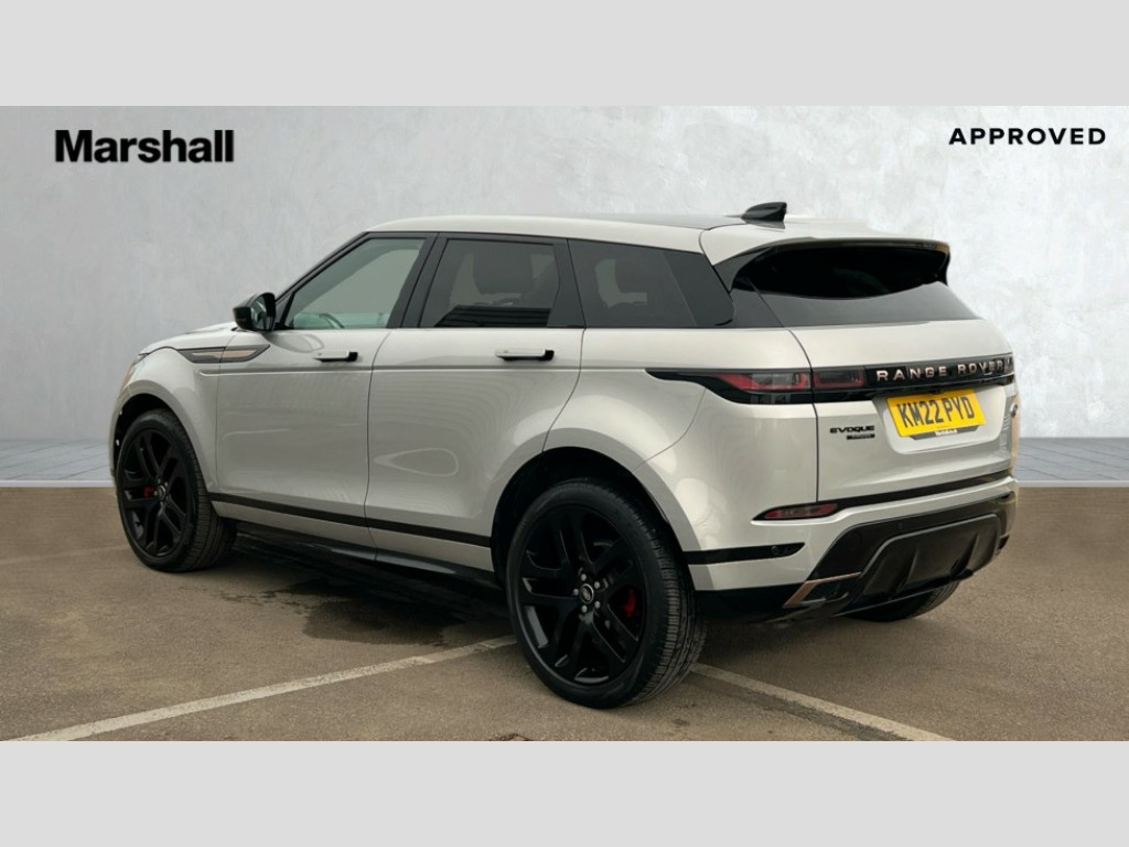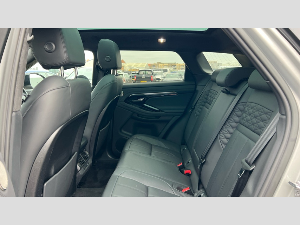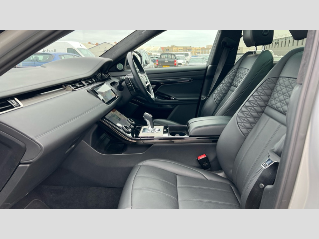 Land Rover Range Rover Evoque 2.0 D200 Autobiography 5dr Auto 10" deployable touchscreen with lower touchscreen, Adaptive cruise control, Android Auto, Apple car play, Blind spot assist, Bluetooth connectivity, Brake pad wear indicator warning light, Clear exit monitor, Driver condition monitor, eCall emergency system, Electronic power assisted steering (EPAS), Front and rear parking aid, InControl remote, Land Rover InControl apps, Lane keep assist, Pivi pro connected includes upgraded infotainment, connected navigation pro, Nuance speech licence, Powered gesture tailgate/boot lid, Push button starter, Rear collision monitor, Rear traffic monitor, Traffic sign recognition with adaptive speed limiter, Voice control system, Adaptive dynamics, All terrain progress control, Configurable dynamics, Efficient Driveline, Terrain Response 2 Auto, Digital Audio Broadcast radio-DAB, Meridian surround sound system with 650W subwoofer and 14 speakers, Steering wheel mounted controls, Auto headlights, Autobiography badge, Automatic headlight levelling, ClearSight interior rear view mirror, Electric windows with one touch open/close and anti trap, Evoque and R-Dynamic badge, Flush deployable exterior door handles, Heated rear window with timer, Heated washer jets, Heated windscreen, Matrix LED headlights with signature DRL, intelligent high beam assist, signature Hi-Line tail lights and animated directional indicators, Power fold, auto-dimming, heated door mirrors with approach lights and auto dimming driver side, R-Dynamic branding illuminated metal tread plates in loadspace and row 1 with brand name script and non illuminated metal in row 2, Rain sensing windscreen wipers, Rear fog lights, Rear side wing doors, Rear wiper, Tailgate spoiler, Third brake light, 14 way electric heated/cooled front and rear seats with driver memory, 2 way man headrest, electric 4 way lumbar support, bolsters + headrest adj, 40:20:40 split folding rear seats with centre headrest and armrest, Ambient interior lighting, Bright metal pedals, Electrically adjustable steering column with memory function and easy entry/exit, Full extended leather upgrade, Heated steering wheel, Isofix system on outer rear seats, Overhead lighting console, Overhead stowage for sunglasses, Passive front head restraints, Perforated full leather steering wheel, Premium cabin lighting, Premium carpet mats, Rear air vents, Rear centre headrest, Rear head restraints, Satin chrome gearshift paddles, Single passenger seat, Sunvisors with illuminated vanity mirrors, Twin sliding front centre armrest, 3 rear 3 point seatbelts, Anti-lock braking system (ABS), Customer configurable autolock, DSC - Dynamic Stability Control, Electronic brake force distribution, Electronic parking brake, Electronic traction control, Emergency braking, Front and rear seatbelt reminder, Hill descent control, Hill launch assist, Low traction launch, Power operated child locks, Red brake calipers, Roll stability control, Six airbags - Driver and passenger airbags/driver knee airbag/front side airbag and curtain airbags, Torque vectoring brake, Tyre pressure monitoring system, Alarm, Immobiliser, Intrusion sensor, Keyless entry, Locking wheel nuts
