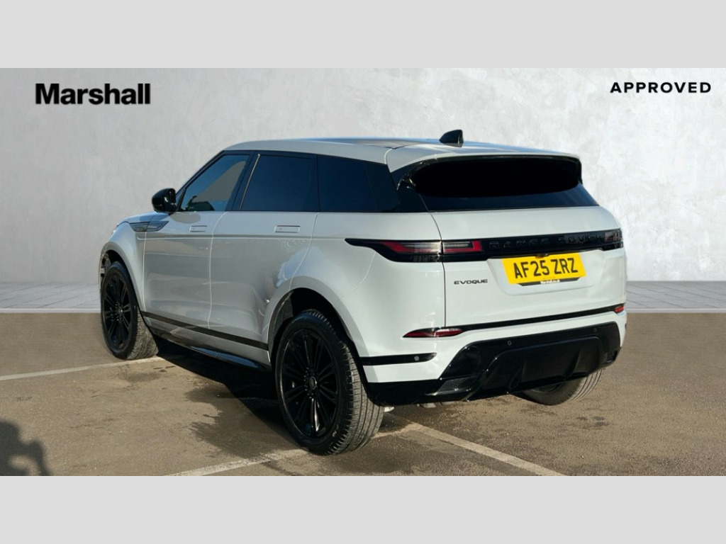 Land Rover Range Rover Evoque 2.0 D200 Dynamic HSE 5dr Auto 11.4" touch screen, Adaptive cruise control, Android Auto, Apple car play, Blind spot assist, Bluetooth connectivity, Brake pad wear indicator warning light, Driver condition monitor, eCall emergency system, Eco mode, Electronic power assisted steering (EPAS), Front and rear parking aid, InControl remote, Interactive driver display, Land Rover InControl apps, Lane keep assist, Pivi pro connected includes diamond pivi variant, smart settings, connected navigation pro, nuance speech licence, Powered tailgate/boot lid, Rear collision monitor, Rear traffic monitor, Traffic sign recognition with adaptive speed limiter, Voice control system, Wireless device charging, All terrain progress control, Diesel exhaust fluid (DEF) large tank, Efficient Driveline, Large fuel tank, Passive suspension, Terrain Response 2, Digital Audio Broadcast radio-DAB, Steering wheel mounted controls, Acoustic laminated windscreen, Auto headlights, Automatic headlight levelling, Electric windows with one touch open/close and anti trap, Flush deployable exterior door handles, Front and rear recovery eyes, Heated rear window with timer, Heated washer jets, Heated windscreen, Pixel LED headlights with signature DRL and LED tail Lights, Power fold, auto-dimming, heated door mirrors with approach lights and auto dimming driver side, Rain sensing windscreen wipers, Rear animated directional indicators, Rear fog lights, Rear side wing doors, Rear wiper, Side repeater indicators in mirror, Tailgate spoiler, Third brake light, Winter wiper park position, 14 way driver memory electric front seats with 2 way manual headrests + 4 way lumbar support, bolsters, 40:20:40 split folding rear seats with centre headrest and armrest, Ambient interior lighting, Bright metal pedals, Carpet mats, Chrome tread plates with range rover branding Includes stainless steel loadspace scuff plate with etched graphic, Customer configurable single point entry, Electrically adjustable steering column with memory function and easy entry/exit, Front and rear cupholders, Heated steering wheel, Isofix system on outer rear seats, Overhead lighting console, Overhead stowage for sunglasses, Passive front head restraints, Rear air vents, Rear head restraints, Satin chrome gearshift paddles, Single passenger seat, Sunvisors with illuminated vanity mirrors, Twin sliding front centre armrest, Online pack with data plan - Evoque, Power socket pack 2 - Evoque, 3 rear 3 point seatbelts, Anti-lock braking system (ABS), Brake hold function, Customer configurable autolock, DSC - Dynamic Stability Control, Electronic brake force distribution, Electronic parking brake, Electronic traction control, Emergency braking, Front and rear seatbelt reminder, Hill descent control, Hill launch assist, Low traction launch, Occupant protection assist, Passenger seat occupant detector, Power operated child locks, Roll stability control, Six airbags - Driver and passenger airbags/driver knee airbag/front side airbag and curtain airbags, Torque vectoring brake, Tyre pressure monitoring system, Alarm, Immobiliser, Intrusion sensor, Keyless entry, Locking wheel nuts
