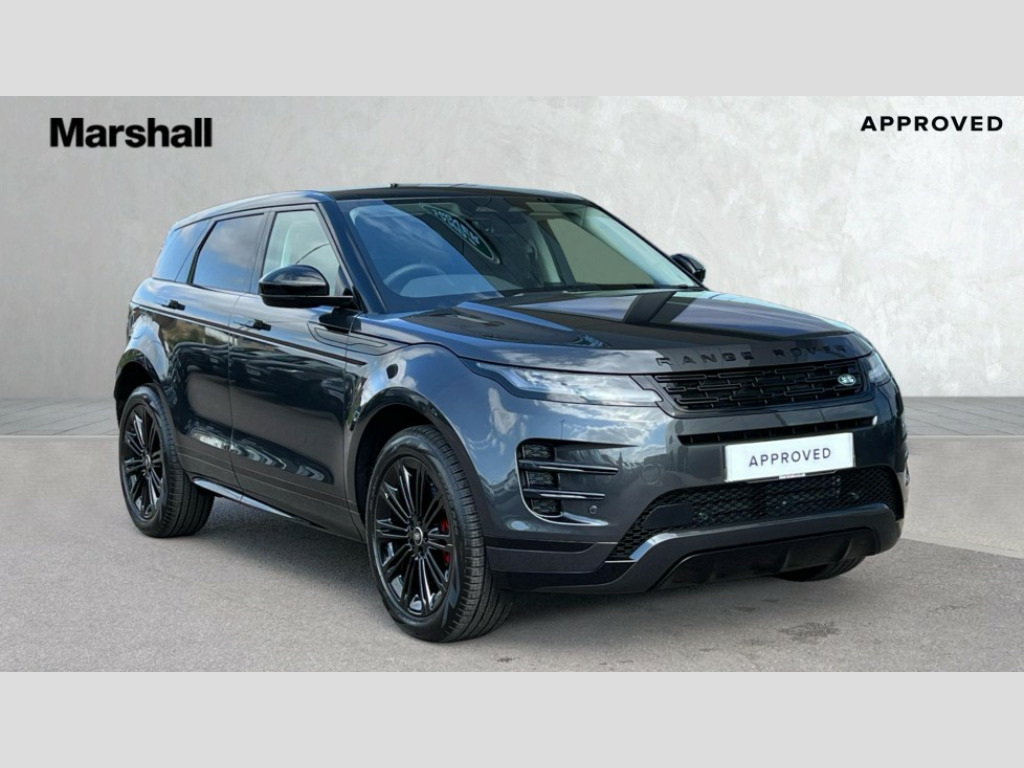 Marshall Land Rover Lincoln are pleased to offer our Land Rover Range Rover Evoque 2.0 D200 R-DYNAMIC SE 5dr Auto Finished in PREMIUM METALLIC CARPATHIAN GREY with CLOUD/EBONY GRAINED LEATHER interior. This Premium vehicle comes with features such as 20" STYLE 1085 GLOSS BLACK ALLOY WHEELS, RED BRAKE CALIPERS, REDUCE SECTION SPARE WHEEL, PRIVACY GLASS, BLACK EXTERIOR PACK, BLACK CONTRAST ROOF, SECURE TRACKER PRO, MERIDIAN SOUND SYSTEM, WIRELESS DEVICE CHARGING, HEATED FRONT SEATS, KEYLESS ENTRY, APPLE CARPLAY/ANDROID AUTO and SO MUCH MORE. Distinctive and individual, a true Range Rover in compact form. This small SUV is sleek and stylish with unique design features and advanced technology as well as practicality. Our helpful and attentive team at Marshall Land Rover Lincoln are on hand 7 days a week to help you find the perfect car to suits your needs. Our dedicated team can assist you whether you’re in our showroom for a browse, arranging test drives or providing you with a personalised video for you to view the car without even leaving the house. All Approved Used Jaguar Land Rover Approved vehicles undergo a comprehensive series of stringent tests and inspections, allowing you to buy with peace of mind. These checks include, 165 exacting checks to pass, reconditioning with Jaguar Land Rover original parts, history and mileage checks, 30 day exchange plan, minimum of 12 months Warranty with Roadside Assistance. We are proud to be part of The Marshall Motor Group which was established over a century ago and since then has grown into one of the UK’s largest motor groups. 11.4" touch screen, 3D 360 degree surround camera with wade sensing, Adaptive cruise control, Android Auto, Apple car play, Blind spot assist, Bluetooth connectivity, Brake pad wear indicator warning light, Driver condition monitor, eCall emergency system, Eco mode, Electronic power assisted steering (EPAS), Front and rear parking aid, InControl remote, Interactive driver display, Land Rover InControl apps, Lane keep assist, Pivi pro connected includes diamond pivi variant, smart settings, connected navigation pro, nuance speech licence, Powered tailgate/boot lid, Rear collision monitor, Rear traffic monitor, Tailgate, Traffic sign recognition with adaptive speed limiter, Voice control system, Wireless device charging, All terrain progress control, Diesel exhaust fluid (DEF) large tank, Efficient Driveline, Large fuel tank, Terrain Response 2, Digital Audio Broadcast radio-DAB, Steering wheel mounted controls, Acoustic laminated windscreen, Auto headlights, Auto high beam assist, Automatic headlight levelling, Electric windows with one touch open/close and anti trap, Flush deployable exterior door handles, Front and rear recovery eyes, Heated rear window with timer, Heated washer jets, Heated windscreen, LED headlights with signature DRL and LED tail Lights, Power fold, auto-dimming, heated door mirrors with approach lights and auto dimming driver side, Rain sensing windscreen wipers, Rear animated directional indicators, Rear fog lights, Rear side wing doors, Rear wiper, Side repeater indicators in mirror, Tailgate spoiler, Third brake light, Winter wiper park position, 12 way driver memory and 10 way passenger electric front seats with 2 way manual headrest + 4 way lumbar support, 40:20:40 split folding rear seats with centre headrest and armrest, Ambient interior lighting, Bright metal pedals, Carpet mats, Chrome tread plates with range rover branding Includes stainless steel loadspace scuff plate with etched graphic, Customer configurable single point entry, Front and rear cupholders, Heated front seats, Heated steering wheel, Isofix system on outer rear seats, Manually adjustable steering column, Overhead lighting console, Overhead stowage for sunglasses, Passive front head restraints, Rear air vents, Rear head restraints, Satin chrome gearshift paddles, SE Grained leather upholstery, Single passenger seat, Standard steering wheel with Moonlight Bezel, Sunvisors with illuminated vanity mirrors, Twin sliding front centre armrest, Power socket pack 2 - Evoque, 3 rear 3 point seatbelts, Anti-lock braking system (ABS), Brake hold function, Customer configurable autolock, DSC - Dynamic Stability Control, Electronic brake force distribution, Electronic parking brake, Electronic traction control, Emergency braking, Front and rear seatbelt reminder, Hill descent control, Hill launch assist, Low traction launch, Occupant protection assist, Passenger seat occupant detector, Power operated child locks, Roll stability control, Six airbags - Driver and passenger airbags/driver knee airbag/front side airbag and curtain airbags, Torque vectoring brake, Tyre pressure monitoring system, Alarm, Immobiliser, Intrusion sensor, Keyless entry, Locking wheel nuts, All season tyres