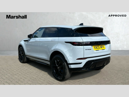 This exceptional 2025 Land Rover Range Rover Evoque D200 Dynamic SE is presented as a Land Rover manufacturer approved vehicle with a full dealership service history and only one owner from new, all backed by a 12 month warranty. This Four Wheel Drive model features a 2.0L Diesel Engine and meets Euro 6 emission standards. Notable features include a striking Black Exterior Styling Pack, privacy glass for all rear glass panels, a fixed panoramic roof with a powered blind, a heated steering wheel for added comfort, and a two zone climate control system.
