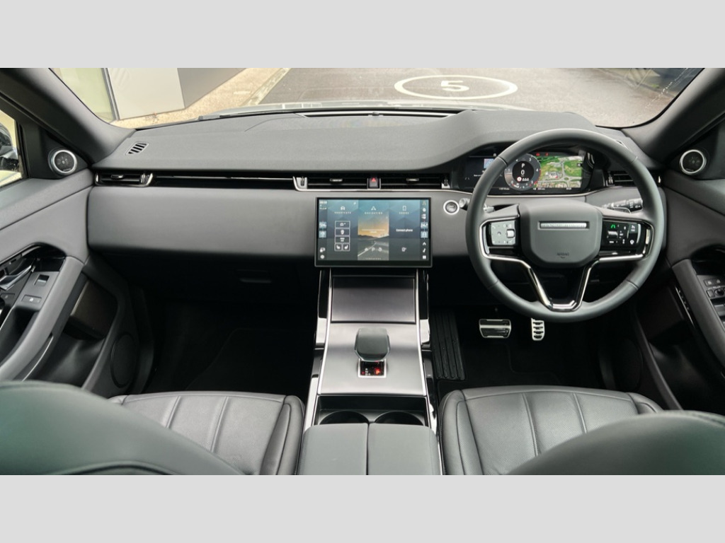 Land Rover Range Rover Evoque 2.0 D200 Edition 5dr Auto 11.4" touch screen, 3D 360 degree surround camera with wade sensing, Adaptive cruise control, Android Auto, Apple car play, Blind spot assist, Bluetooth connectivity, Brake pad wear indicator warning light, Driver condition monitor, eCall emergency system, Eco mode, Electronic power assisted steering (EPAS), Front and rear parking aid, InControl remote, Interactive driver display, Land Rover InControl apps, Lane keep assist, Pivi pro connected includes diamond pivi variant, smart settings, connected navigation pro, nuance speech licence, Powered tailgate/boot lid, Rear collision monitor, Rear traffic monitor, Tailgate, Traffic sign recognition with adaptive speed limiter, Voice control system, Wireless device charging, All terrain progress control, Diesel exhaust fluid (DEF) large tank, Efficient Driveline, Large fuel tank, Passive suspension, Terrain Response 2, Digital Audio Broadcast radio-DAB, Meridian sound system with 400W subwoofer and 11 speakers, Steering wheel mounted controls, Acoustic laminated windscreen, Auto dimming interior rear view mirror, Auto headlights, Auto high beam assist, Automatic headlight levelling, Black contrast roof, Electric windows with one touch open/close and anti trap, Fixed panoramic sunroof with powered sunblind, Flush deployable exterior door handles, Front and rear recovery eyes, Heated rear window with timer, Heated washer jets, Heated windscreen, LED headlights with signature DRL and LED tail Lights, Metallic paint, Power fold, auto-dimming, heated door mirrors with approach lights and auto dimming driver side, Privacy glass, Rain sensing windscreen wipers, Rear animated directional indicators, Rear fog lights, Rear side wing doors, Rear wiper, Side repeater indicators in mirror, Tailgate spoiler, Third brake light, Winter wiper park position, 12 way driver memory and 10 way passenger electric front seats with 2 way manual headrest + 4 way lumbar support, 40:20:40 split folding rear seats with centre headrest and armrest, Ambient interior lighting, Bright metal pedals, Cabin lighting, Carpet mats, Chrome tread plates with range rover branding Includes stainless steel loadspace scuff plate with etched graphic, Customer configurable single point entry, Front and rear cupholders, Grained Leather upholstery, Heated front seats, Heated steering wheel, Isofix system on outer rear seats, Manually adjustable steering column, Overhead lighting console, Overhead stowage for sunglasses, Passive front head restraints, Rear air vents, Rear head restraints, Satin chrome gearshift paddles, Single passenger seat, Standard steering wheel with Moonlight Bezel, Sunvisors with illuminated vanity mirrors, Twin sliding front centre armrest, Two zone climate control, Black exterior styling pack - Evoque, Power socket pack 2 - Evoque, 3 rear 3 point seatbelts, Anti-lock braking system (ABS), Black brake calipers, Brake hold function, Customer configurable autolock, DSC - Dynamic Stability Control, Electronic brake force distribution, Electronic parking brake, Electronic traction control, Emergency braking, Front and rear seatbelt reminder, Hill descent control, Hill launch assist, Low traction launch, Occupant protection assist, Passenger seat occupant detector, Power operated child locks, Roll stability control, Six airbags - Driver and passenger airbags/driver knee airbag/front side airbag and curtain airbags, Torque vectoring brake, Tyre pressure monitoring system, Alarm, Immobiliser, Intrusion sensor, Keyless entry, Locking wheel nuts, Secure tracker pro, Black brushed aluminium finisher, 19" gloss black alloy wheels - Style 5136, All season tyres, Tyre repair system
