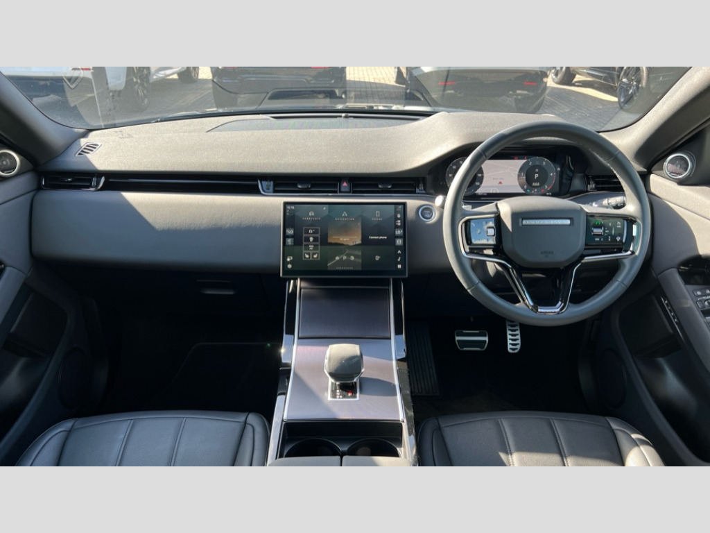 Land Rover Range Rover Evoque 2.0 D200 Edition 5dr Auto 11.4" touch screen, 3D 360 degree surround camera with wade sensing, Adaptive cruise control, Android Auto, Apple car play, Blind spot assist, Bluetooth connectivity, Brake pad wear indicator warning light, Driver condition monitor, eCall emergency system, Eco mode, Electronic power assisted steering (EPAS), Front and rear parking aid, InControl remote, Interactive driver display, Land Rover InControl apps, Lane keep assist, Pivi pro connected includes diamond pivi variant, smart settings, connected navigation pro, nuance speech licence, Powered tailgate/boot lid, Rear collision monitor, Rear traffic monitor, Tailgate, Traffic sign recognition with adaptive speed limiter, Voice control system, Wireless device charging, All terrain progress control, Diesel exhaust fluid (DEF) large tank, Efficient Driveline, Large fuel tank, Passive suspension, Terrain Response 2, Digital Audio Broadcast radio-DAB, Meridian sound system with 400W subwoofer and 11 speakers, Steering wheel mounted controls, Acoustic laminated windscreen, Auto dimming interior rear view mirror, Auto headlights, Auto high beam assist, Automatic headlight levelling, Black contrast roof, Electric windows with one touch open/close and anti trap, Fixed panoramic sunroof with powered sunblind, Flush deployable exterior door handles, Front and rear recovery eyes, Heated rear window with timer, Heated washer jets, Heated windscreen, LED headlights with signature DRL and LED tail Lights, Metallic paint, Power fold, auto-dimming, heated door mirrors with approach lights and auto dimming driver side, Privacy glass, Rain sensing windscreen wipers, Rear animated directional indicators, Rear fog lights, Rear side wing doors, Rear wiper, Side repeater indicators in mirror, Tailgate spoiler, Third brake light, Winter wiper park position, 12 way driver memory and 10 way passenger electric front seats with 2 way manual headrest + 4 way lumbar support, 40:20:40 split folding rear seats with centre headrest and armrest, Ambient interior lighting, Bright metal pedals, Cabin lighting, Carpet mats, Chrome tread plates with range rover branding Includes stainless steel loadspace scuff plate with etched graphic, Customer configurable single point entry, Front and rear cupholders, Grained Leather upholstery, Heated front seats, Heated steering wheel, Isofix system on outer rear seats, Manually adjustable steering column, Overhead lighting console, Overhead stowage for sunglasses, Passive front head restraints, Rear air vents, Rear head restraints, Satin chrome gearshift paddles, Single passenger seat, Standard steering wheel with Moonlight Bezel, Sunvisors with illuminated vanity mirrors, Twin sliding front centre armrest, Two zone climate control, Black exterior styling pack - Evoque, Power socket pack 2 - Evoque, 3 rear 3 point seatbelts, Anti-lock braking system (ABS), Black brake calipers, Brake hold function, Customer configurable autolock, DSC - Dynamic Stability Control, Electronic brake force distribution, Electronic parking brake, Electronic traction control, Emergency braking, Front and rear seatbelt reminder, Hill descent control, Hill launch assist, Low traction launch, Occupant protection assist, Passenger seat occupant detector, Power operated child locks, Roll stability control, Six airbags - Driver and passenger airbags/driver knee airbag/front side airbag and curtain airbags, Torque vectoring brake, Tyre pressure monitoring system, Alarm, Immobiliser, Intrusion sensor, Keyless entry, Locking wheel nuts, Secure tracker pro, Black brushed aluminium finisher, 19" gloss black alloy wheels - Style 5136, All season tyres, Tyre repair system