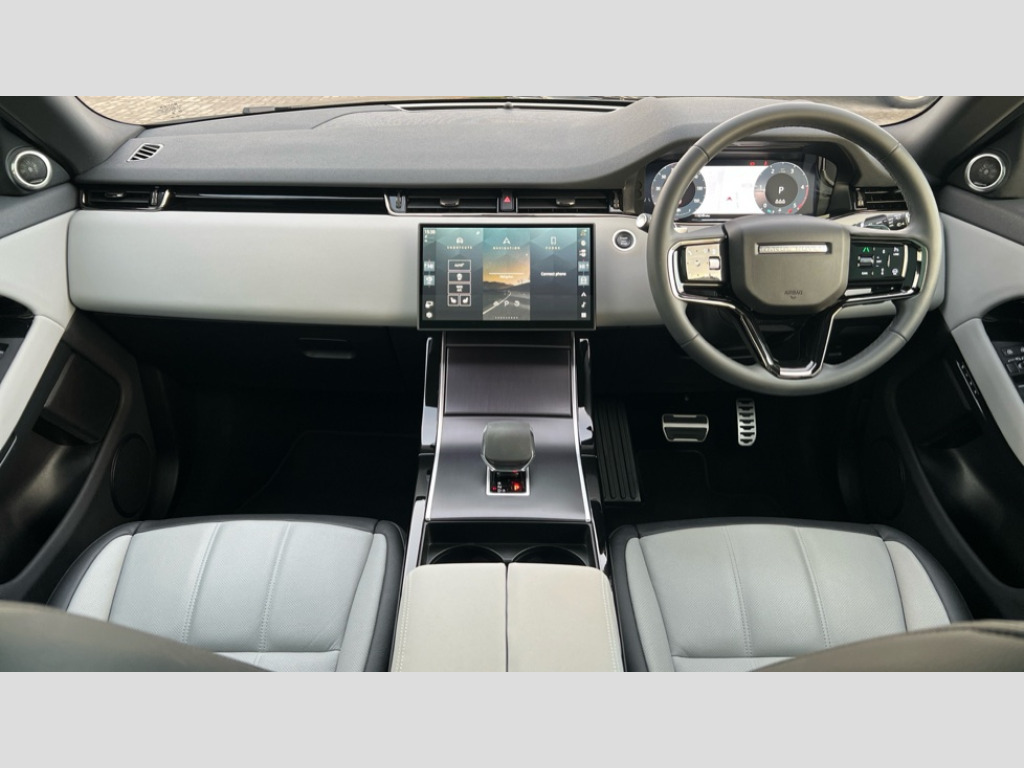 Land Rover Range Rover Evoque 2.0 D200 Edition 5dr Auto 11.4" touch screen, 3D 360 degree surround camera with wade sensing, Adaptive cruise control, Android Auto, Apple car play, Blind spot assist, Bluetooth connectivity, Brake pad wear indicator warning light, Driver condition monitor, eCall emergency system, Eco mode, Electronic power assisted steering (EPAS), Front and rear parking aid, InControl remote, Interactive driver display, Land Rover InControl apps, Lane keep assist, Pivi pro connected includes diamond pivi variant, smart settings, connected navigation pro, nuance speech licence, Powered tailgate/boot lid, Rear collision monitor, Rear traffic monitor, Tailgate, Traffic sign recognition with adaptive speed limiter, Voice control system, Wireless device charging, All terrain progress control, Diesel exhaust fluid (DEF) large tank, Efficient Driveline, Large fuel tank, Passive suspension, Terrain Response 2, Digital Audio Broadcast radio-DAB, Meridian sound system with 400W subwoofer and 11 speakers, Steering wheel mounted controls, Acoustic laminated windscreen, Auto dimming interior rear view mirror, Auto headlights, Auto high beam assist, Automatic headlight levelling, Black contrast roof, Electric windows with one touch open/close and anti trap, Fixed panoramic sunroof with powered sunblind, Flush deployable exterior door handles, Front and rear recovery eyes, Heated rear window with timer, Heated washer jets, Heated windscreen, LED headlights with signature DRL and LED tail Lights, Metallic paint, Power fold, auto-dimming, heated door mirrors with approach lights and auto dimming driver side, Privacy glass, Rain sensing windscreen wipers, Rear animated directional indicators, Rear fog lights, Rear side wing doors, Rear wiper, Side repeater indicators in mirror, Tailgate spoiler, Third brake light, Winter wiper park position, 12 way driver memory and 10 way passenger electric front seats with 2 way manual headrest + 4 way lumbar support, 40:20:40 split folding rear seats with centre headrest and armrest, Ambient interior lighting, Bright metal pedals, Cabin lighting, Carpet mats, Chrome tread plates with range rover branding Includes stainless steel loadspace scuff plate with etched graphic, Customer configurable single point entry, Front and rear cupholders, Grained Leather upholstery, Heated front seats, Heated steering wheel, Isofix system on outer rear seats, Manually adjustable steering column, Overhead lighting console, Overhead stowage for sunglasses, Passive front head restraints, Rear air vents, Rear head restraints, Satin chrome gearshift paddles, Single passenger seat, Standard steering wheel with Moonlight Bezel, Sunvisors with illuminated vanity mirrors, Twin sliding front centre armrest, Two zone climate control, Black exterior styling pack - Evoque, Power socket pack 2 - Evoque, 3 rear 3 point seatbelts, Anti-lock braking system (ABS), Black brake calipers, Brake hold function, Customer configurable autolock, DSC - Dynamic Stability Control, Electronic brake force distribution, Electronic parking brake, Electronic traction control, Emergency braking, Front and rear seatbelt reminder, Hill descent control, Hill launch assist, Low traction launch, Occupant protection assist, Passenger seat occupant detector, Power operated child locks, Roll stability control, Six airbags - Driver and passenger airbags/driver knee airbag/front side airbag and curtain airbags, Torque vectoring brake, Tyre pressure monitoring system, Alarm, Immobiliser, Intrusion sensor, Keyless entry, Locking wheel nuts, Secure tracker pro, Black brushed aluminium finisher, 19" gloss black alloy wheels - Style 5136, All season tyres, Tyre repair system