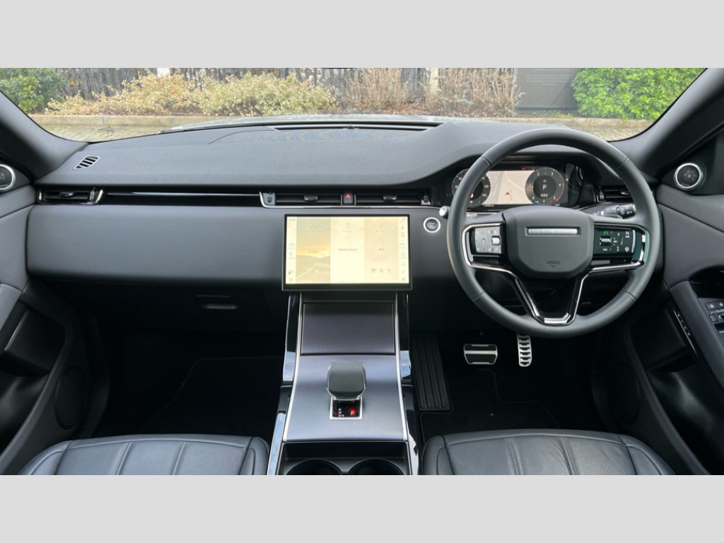 Land Rover Range Rover Evoque 2.0 D200 Edition 5dr Auto 11.4" touch screen, 3D 360 degree surround camera with wade sensing, Adaptive cruise control, Android Auto, Apple car play, Blind spot assist, Bluetooth connectivity, Brake pad wear indicator warning light, Driver condition monitor, eCall emergency system, Eco mode, Electronic power assisted steering (EPAS), Front and rear parking aid, InControl remote, Interactive driver display, Land Rover InControl apps, Lane keep assist, Pivi pro connected includes diamond pivi variant, smart settings, connected navigation pro, nuance speech licence, Powered tailgate/boot lid, Rear collision monitor, Rear traffic monitor, Tailgate, Traffic sign recognition with adaptive speed limiter, Voice control system, Wireless device charging, All terrain progress control, Diesel exhaust fluid (DEF) large tank, Efficient Driveline, Large fuel tank, Passive suspension, Terrain Response 2, Digital Audio Broadcast radio-DAB, Meridian sound system with 400W subwoofer and 11 speakers, Steering wheel mounted controls, Acoustic laminated windscreen, Auto dimming interior rear view mirror, Auto headlights, Auto high beam assist, Automatic headlight levelling, Black contrast roof, Electric windows with one touch open/close and anti trap, Fixed panoramic sunroof with powered sunblind, Flush deployable exterior door handles, Front and rear recovery eyes, Heated rear window with timer, Heated washer jets, Heated windscreen, LED headlights with signature DRL and LED tail Lights, Metallic paint, Power fold, auto-dimming, heated door mirrors with approach lights and auto dimming driver side, Privacy glass, Rain sensing windscreen wipers, Rear animated directional indicators, Rear fog lights, Rear side wing doors, Rear wiper, Side repeater indicators in mirror, Tailgate spoiler, Third brake light, Winter wiper park position, 12 way driver memory and 10 way passenger electric front seats with 2 way manual headrest + 4 way lumbar support, 40:20:40 split folding rear seats with centre headrest and armrest, Ambient interior lighting, Bright metal pedals, Cabin lighting, Carpet mats, Chrome tread plates with range rover branding Includes stainless steel loadspace scuff plate with etched graphic, Customer configurable single point entry, Front and rear cupholders, Grained Leather upholstery, Heated front seats, Heated steering wheel, Isofix system on outer rear seats, Manually adjustable steering column, Overhead lighting console, Overhead stowage for sunglasses, Passive front head restraints, Rear air vents, Rear head restraints, Satin chrome gearshift paddles, Single passenger seat, Standard steering wheel with Moonlight Bezel, Sunvisors with illuminated vanity mirrors, Twin sliding front centre armrest, Two zone climate control, Black exterior styling pack - Evoque, Power socket pack 2 - Evoque, 3 rear 3 point seatbelts, Anti-lock braking system (ABS), Black brake calipers, Brake hold function, Customer configurable autolock, DSC - Dynamic Stability Control, Electronic brake force distribution, Electronic parking brake, Electronic traction control, Emergency braking, Front and rear seatbelt reminder, Hill descent control, Hill launch assist, Low traction launch, Occupant protection assist, Passenger seat occupant detector, Power operated child locks, Roll stability control, Six airbags - Driver and passenger airbags/driver knee airbag/front side airbag and curtain airbags, Torque vectoring brake, Tyre pressure monitoring system, Alarm, Immobiliser, Intrusion sensor, Keyless entry, Locking wheel nuts, Secure tracker pro, Black brushed aluminium finisher, 19" gloss black alloy wheels - Style 5136, All season tyres, Tyre repair system