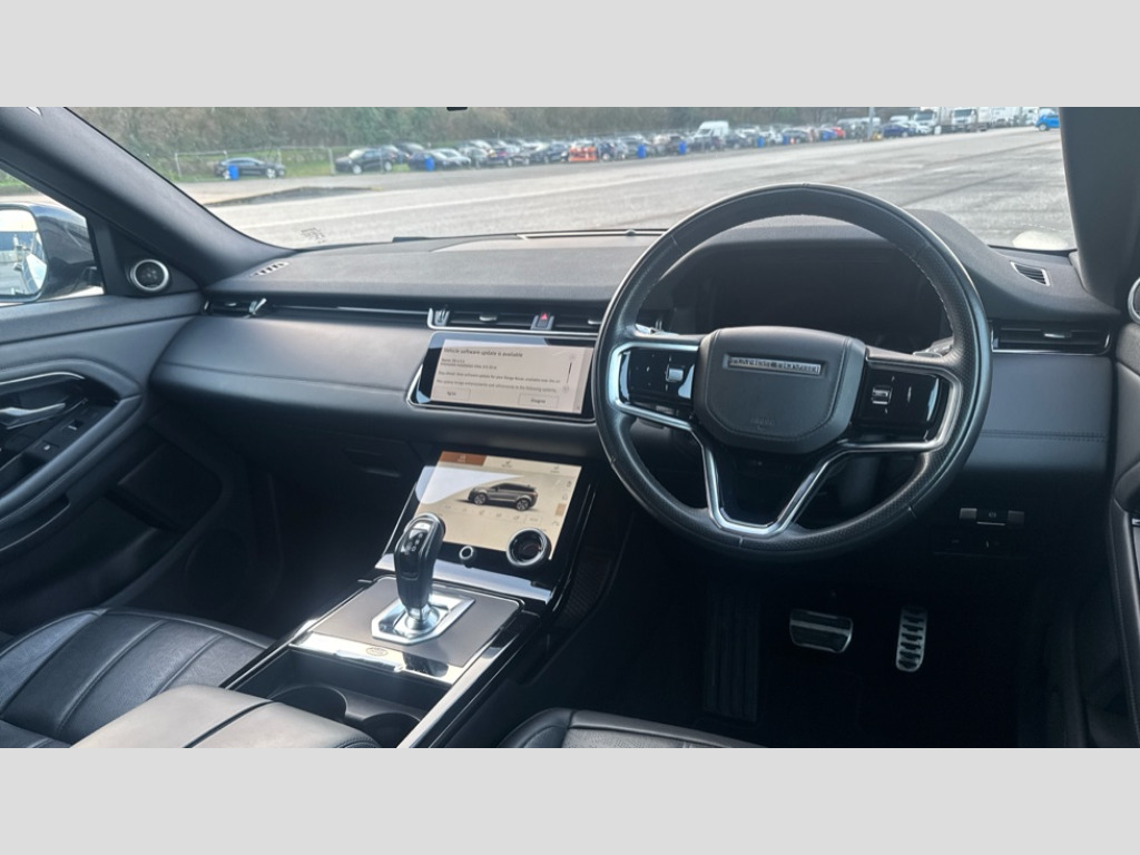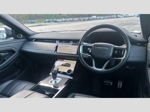 Land Rover Range Rover Evoque 2.0 D200 R-Dynamic HSE 5dr Auto 10" deployable touchscreen with lower touchscreen, Adaptive cruise control, Android Auto, Apple car play, Blind spot assist, Bluetooth connectivity, Brake pad wear indicator warning light, Clear exit monitor, Driver condition monitor, Electronic power assisted steering (EPAS), Front and rear parking aid, InControl remote, Interactive Driver display instrument cluster, Land Rover InControl apps, Lane keep assist, Pivi pro connected includes upgraded infotainment, connected navigation pro, Nuance speech licence, Push button starter, Rear collision monitor, Rear traffic monitor, Traffic sign recognition with adaptive speed limiter, Voice control system, All terrain progress control, Configurable dynamics, Efficient Driveline, Passive suspension, Terrain Response 2 Auto, Digital Audio Broadcast radio-DAB, Steering wheel mounted controls, Automatic headlight levelling, Electric windows with one touch open/close and anti trap, Evoque and R-Dynamic badge, Flush deployable exterior door handles, Heated rear window with timer, Heated washer jets, Heated windscreen, Matrix LED headlights with signature DRL, intelligent high beam assist, signature Hi-Line tail lights and animated directional indicators, Power fold, auto-dimming, heated door mirrors with approach lights and auto dimming driver side, Rain sensing windscreen wipers, Rear fog lights, Tailgate spoiler, 40:20:40 split folding rear seats with centre headrest and armrest, Ambient interior lighting, Bright metal pedals, Heated steering wheel, Isofix system on outer rear seats, Overhead lighting console, Overhead stowage for sunglasses, Passive front head restraints, Perforated full leather steering wheel, Rear air vents, Rear centre headrest, Satin chrome gearshift paddles, Sunvisors with illuminated vanity mirrors, Twin sliding front centre armrest, 3 rear 3 point seatbelts, Anti-lock braking system (ABS), Customer configurable autolock, DSC - Dynamic Stability Control, Electronic brake force distribution, Electronic parking brake, Electronic traction control, Emergency braking, Front and rear seatbelt reminder, Hill descent control, Hill launch assist, Low traction launch, Power operated child locks, Roll stability control, Six airbags - Driver and passenger airbags/driver knee airbag/front side airbag and curtain airbags, Torque vectoring brake, Tyre pressure monitoring system, Alarm, Immobiliser, Intrusion sensor, Keyless entry, Locking wheel nuts