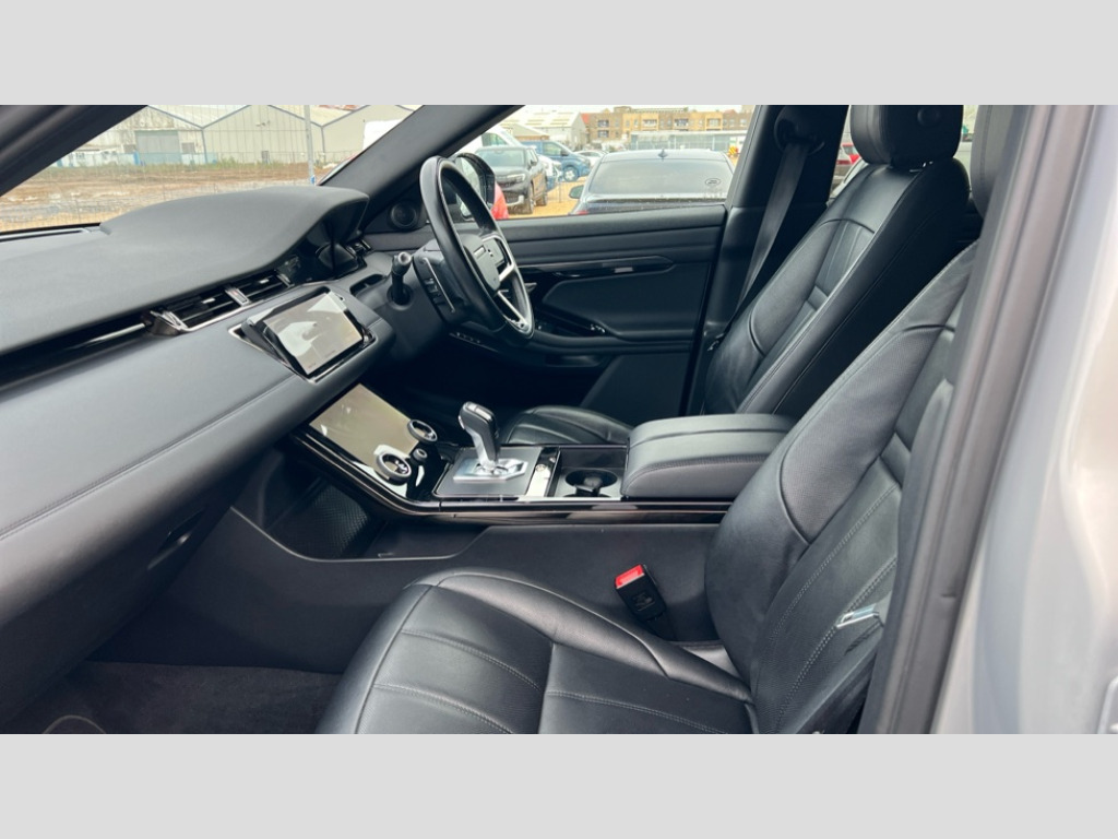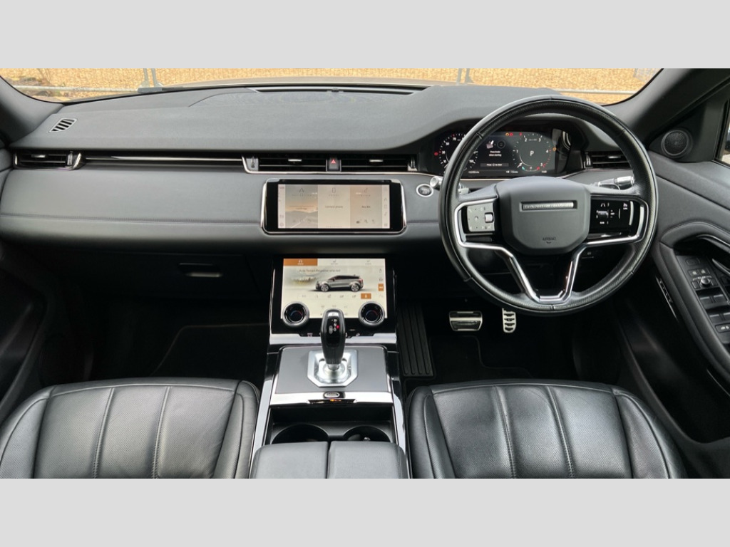 Land Rover Range Rover Evoque 2.0 D200 R-Dynamic SE 5dr Auto 3D 360 degree surround camera, Android Auto, Apple car play, Blind spot assist, Bluetooth connectivity, Brake pad wear indicator warning light, Clear exit monitor, Driver condition monitor, Duo touch pro, Electronic power assisted steering (EPAS), InControl remote, Interactive Driver display instrument cluster, Land Rover InControl apps, Lane keep assist, Pivi pro connected includes upgraded infotainment, connected navigation pro, Nuance speech licence, Push button starter, Rear traffic monitor, Traffic sign recognition with adaptive speed limiter, Voice control system, Wade Sensing, All terrain progress control, Efficient Driveline, Passive suspension, Terrain Response 2 Auto, Digital Audio Broadcast radio-DAB, Steering wheel mounted controls, Automatic headlight levelling, Electric windows with one touch open/close and anti trap, Evoque and R-Dynamic badge, Flush deployable exterior door handles, Heated rear window with timer, Heated washer jets, Heated windscreen, Power fold, auto-dimming, heated door mirrors with approach lights and auto dimming driver side, Rain sensing windscreen wipers, Rear fog lights, Shadow atlas bonnet and tailgate script, Tailgate spoiler, 40:20:40 split folding rear seats with centre headrest and armrest, Ambient interior lighting, Bright metal pedals, Isofix system on outer rear seats, Overhead lighting console, Overhead stowage for sunglasses, Passive front head restraints, Rear air vents, Rear centre headrest, Satin chrome gearshift paddles, Sunvisors with illuminated vanity mirrors, Twin sliding front centre armrest, 3 rear 3 point seatbelts, Anti-lock braking system (ABS), Customer configurable autolock, DSC - Dynamic Stability Control, Electronic brake force distribution, Electronic parking brake, Electronic traction control, Emergency braking, Front and rear seatbelt reminder, Hill descent control, Hill launch assist, Low traction launch, Power operated child locks, Roll stability control, Six airbags - Driver and passenger airbags/driver knee airbag/front side airbag and curtain airbags, Torque vectoring brake, Tyre pressure monitoring system, Alarm, Immobiliser, Intrusion sensor, Locking wheel nuts