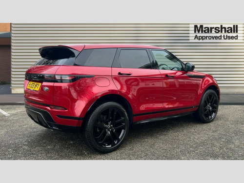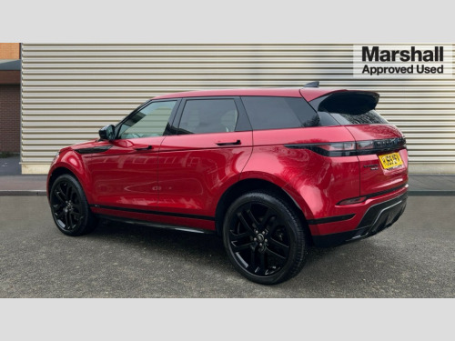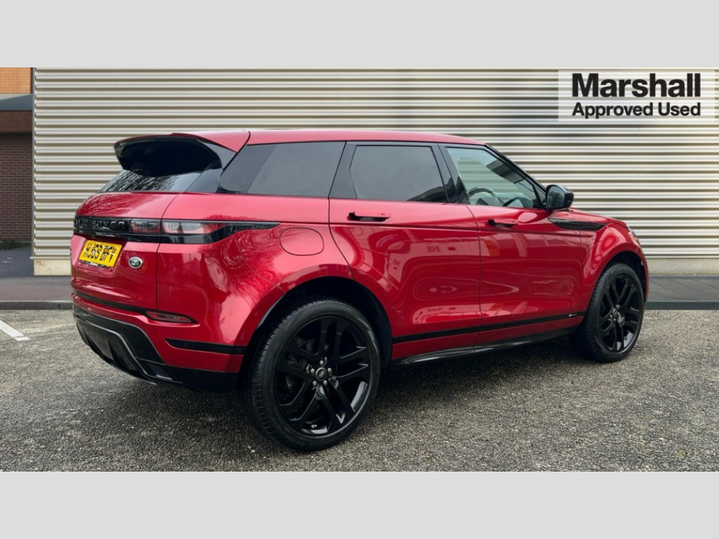 Land Rover Range Rover Evoque 2.0 P200 R-Dynamic SE 5dr Auto 360 degree parking aid, Android Auto, Apple car play, Bluetooth connectivity, Brake pad wear indicator warning light, Clear exit monitor, Driver condition monitor, Duo touch pro, Electronic power assisted steering (EPAS), InControl remote, Interactive Driver display instrument cluster, Land Rover InControl apps, Lane keep assist, Navigation pro system, Park assist - Parallel, perpendicular and parking exit, Pro services and wifi hotspot, Push button starter, Rear traffic monitor, Smart settings, Traffic sign recognition with adaptive speed limiter, Voice control system, All terrain progress control, Efficient Driveline, Large fuel tank, Passive suspension, Terrain Response 2 Auto, Digital Audio Broadcast radio-DAB, Steering wheel mounted controls, Automatic headlight levelling, Electric windows with one touch open/close and anti trap, Evoque and R-Dynamic badge, Flush deployable exterior door handles, Heated rear window with timer, Heated washer jets, Heated windscreen, Power fold, auto-dimming, heated door mirrors with memory and approach lights, Rain sensing windscreen wipers, Rear fog lights, Shadow atlas bonnet and tailgate script, Tailgate spoiler, 40:20:40 split folding rear seats, Black gearshift paddles, Bright metal pedals, Isofix system on outer rear seats, Overhead lighting console, Overhead stowage for sunglasses, Passive front head restraints, Rear air vents, Rear centre headrest, Sunvisors with illuminated vanity mirrors, Twin front cupholders with cover, Twin sliding front centre armrest, Two zone climate control, Anti-lock braking system (ABS), Customer configurable autolock, DSC - Dynamic Stability Control, Electronic brake force distribution, Electronic parking brake, Electronic traction control, Front and rear seatbelt reminder, Hill descent control, Hill launch assist, Low traction launch, Power operated child locks, Roll stability control, Six airbags - Driver and passenger airbags/driver knee airbag/front side airbag and curtain airbags, Torque vectoring brake, Tyre pressure monitoring system, Alarm, Immobiliser, Intrusion sensor, Locking wheel nuts