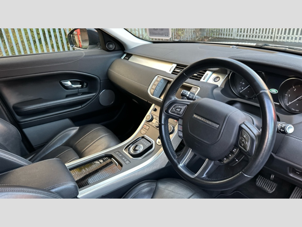 Land Rover Range Rover Evoque 2.0 TD4 SE Tech 5dr Auto Bluetooth telephone connectivity, Cruise control, Drive select with paddle shift and sport mode, EPAS, Parking distance sensors front and rear, Service interval indicator, Stop/start system, Trip computer, Voice control system, Diesel particulate filter, Auxiliary Audio Jack, Bluetooth audio streaming, DAB Digital radio, InControl protect, Steering wheel mounted audio/cruise controls, Anthracite side sills, Auto dimming rear view mirror, Automatic headlamp activation, Black fender vents, Body colour door handles, Body coloured bumpers, Front fog lights, Heated rear windscreen, Heated windscreen, Heated windscreen washers, High beam assistant, Narvik black mirror caps, Narvik black tailgate finish, Power front/rear windows with global close, Rain sensor windscreen wipers, Rear wiper, Trailer stability assist, Xenon headlights with LED signature lights + auto levelling and power wash, 12V power point in luggage area, 60/40 split folding rear seat, Air quality sensor, Ambient interior lighting, Auto climate control with air filtration, Carpet mats, Centre console storage with lid, Driver/passenger sunvisors and illuminated vanity mirrors, Footwell illumination, Front centre armrest with 2 cupholders, Front head restraints, Front map lights, Height/reach adjustable steering column, Illuminated glovebox, Isofix child seat preparation, Lashing points, Leather steering wheel, Luggage compartment lighting, Luggage cover, Rear air con vents, Rear centre head restraint, Rear headrests, Rear seat centre armrest, 3 rear 3 point seatbelts, ABS/EBD, Driver and passenger airbags, Drivers knee airbag, DSC - Dynamic Stability Control, DTC - Drag torque control, EBA, Electronic parking brake, Electronic traction control, Front seatbelt pretensioners with force limiters, Front side airbags with curtain airbags, Height adjustable front seatbelts, Hill descent control, Hill start assist, Intelligent all wheel drive system - Active Driveline, Roll stability control, Seatbelt warning, Torque vectoring brake, Tyre pressure monitoring system, Alarm, Immobiliser, Locking wheel nuts, Remote central locking