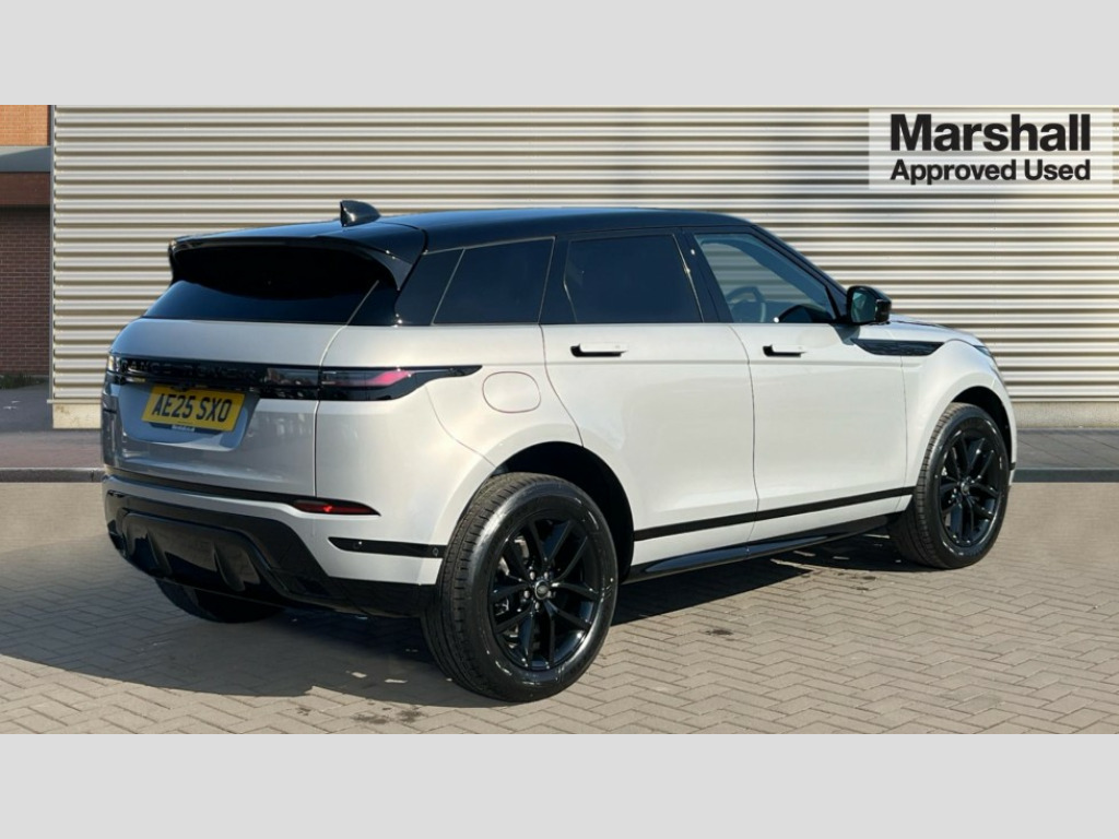 Land Rover Range Rover Evoque 2.0 D200 Edition 5dr Auto 11.4" touch screen, 3D 360 degree surround camera with wade sensing, Adaptive cruise control, Android Auto, Apple car play, Blind spot assist, Bluetooth connectivity, Brake pad wear indicator warning light, Driver condition monitor, eCall emergency system, Eco mode, Electronic power assisted steering (EPAS), Front and rear parking aid, InControl remote, Interactive driver display, Land Rover InControl apps, Lane keep assist, Pivi pro connected includes diamond pivi variant, smart settings, connected navigation pro, nuance speech licence, Powered tailgate/boot lid, Rear collision monitor, Rear traffic monitor, Tailgate, Traffic sign recognition with adaptive speed limiter, Voice control system, Wireless device charging, All terrain progress control, Diesel exhaust fluid (DEF) large tank, Efficient Driveline, Large fuel tank, Passive suspension, Terrain Response 2, Digital Audio Broadcast radio-DAB, Meridian sound system with 400W subwoofer and 11 speakers, Steering wheel mounted controls, Acoustic laminated windscreen, Auto dimming interior rear view mirror, Auto headlights, Auto high beam assist, Automatic headlight levelling, Black contrast roof, Electric windows with one touch open/close and anti trap, Fixed panoramic sunroof with powered sunblind, Flush deployable exterior door handles, Front and rear recovery eyes, Heated rear window with timer, Heated washer jets, Heated windscreen, LED headlights with signature DRL and LED tail Lights, Metallic paint, Power fold, auto-dimming, heated door mirrors with approach lights and auto dimming driver side, Privacy glass, Rain sensing windscreen wipers, Rear animated directional indicators, Rear fog lights, Rear side wing doors, Rear wiper, Side repeater indicators in mirror, Tailgate spoiler, Third brake light, Winter wiper park position, 12 way driver memory and 10 way passenger electric front seats with 2 way manual headrest + 4 way lumbar support, 40:20:40 split folding rear seats with centre headrest and armrest, Ambient interior lighting, Bright metal pedals, Cabin lighting, Carpet mats, Chrome tread plates with range rover branding Includes stainless steel loadspace scuff plate with etched graphic, Customer configurable single point entry, Front and rear cupholders, Grained Leather upholstery, Heated front seats, Heated steering wheel, Isofix system on outer rear seats, Manually adjustable steering column, Overhead lighting console, Overhead stowage for sunglasses, Passive front head restraints, Rear air vents, Rear head restraints, Satin chrome gearshift paddles, Single passenger seat, Standard steering wheel with Moonlight Bezel, Sunvisors with illuminated vanity mirrors, Twin sliding front centre armrest, Two zone climate control, Black exterior styling pack - Evoque, Power socket pack 2 - Evoque, 3 rear 3 point seatbelts, Anti-lock braking system (ABS), Black brake calipers, Brake hold function, Customer configurable autolock, DSC - Dynamic Stability Control, Electronic brake force distribution, Electronic parking brake, Electronic traction control, Emergency braking, Front and rear seatbelt reminder, Hill descent control, Hill launch assist, Low traction launch, Occupant protection assist, Passenger seat occupant detector, Power operated child locks, Roll stability control, Six airbags - Driver and passenger airbags/driver knee airbag/front side airbag and curtain airbags, Torque vectoring brake, Tyre pressure monitoring system, Alarm, Immobiliser, Intrusion sensor, Keyless entry, Locking wheel nuts, Secure tracker pro, Black brushed aluminium finisher, 19" gloss black alloy wheels - Style 5136, All season tyres, Tyre repair system