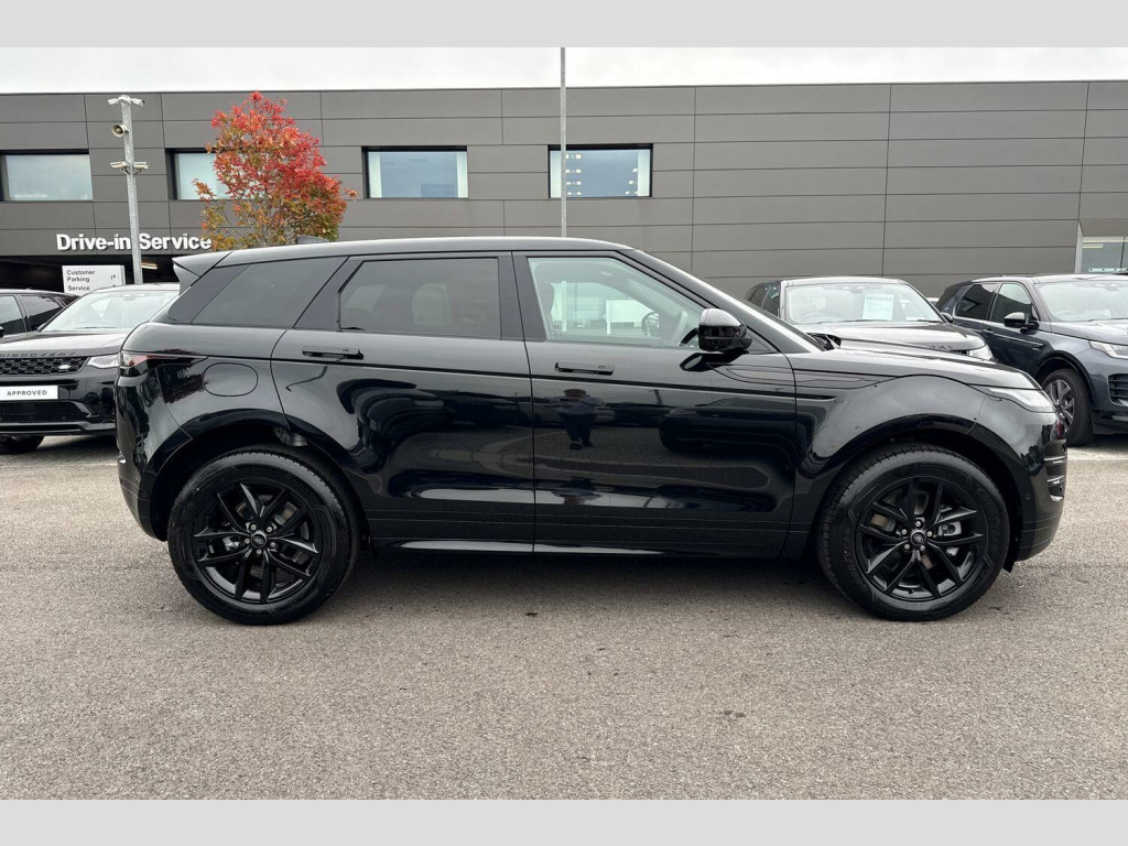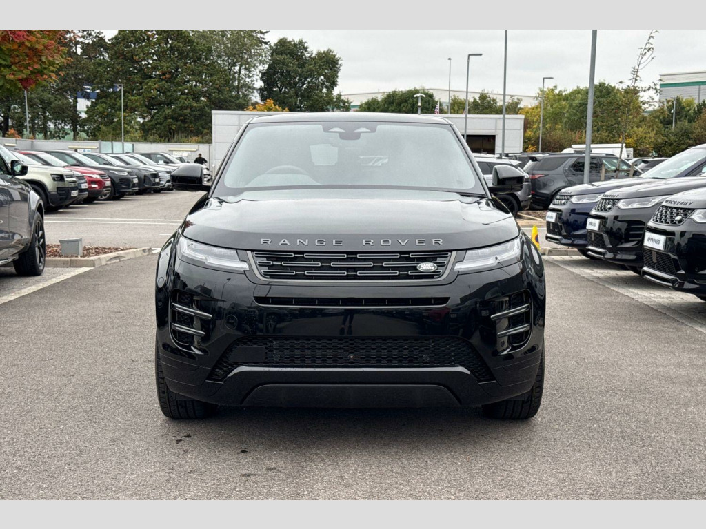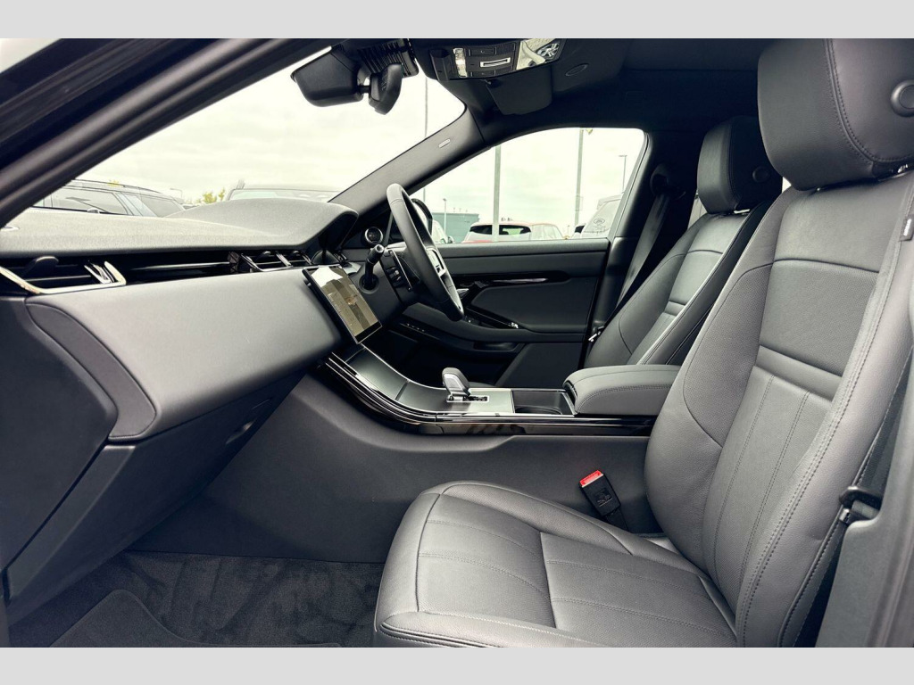 Stafford Land Rover are proud to present this brand new Range Rover Evoque 2.0 D165 MHEV Dynamic SE Auto 4WD finished in the stunning Santorini Black Paint. On the exterior, this Evoque stands out with 19-inch Gloss Dark Grey Alloy Wheels (Style 5136) featuring a Diamond Turned Contrast finish, a Body-Coloured Roof, and LED Headlights with Signature DRL. Flush deployable door handles and rear animated directional indicators enhance the car’s modern, minimalist aesthetic.