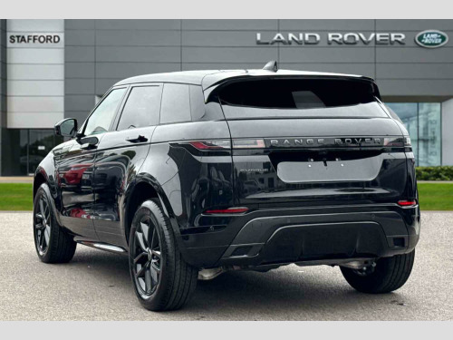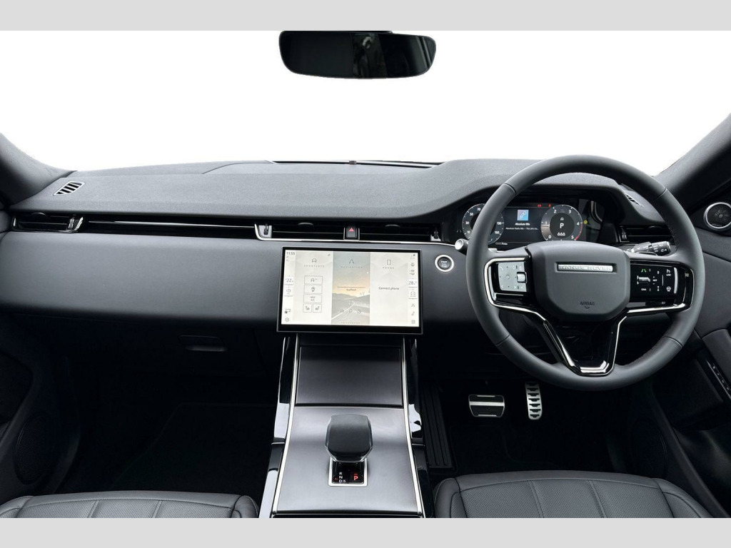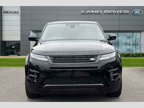 Stafford Land Rover are proud to present this brand new Range Rover Evoque 2.0 D165 MHEV Dynamic SE Auto 4WD finished in the stunning Santorini Black Paint. On the exterior, this Evoque stands out with 19-inch Gloss Dark Grey Alloy Wheels (Style 5136) featuring a Diamond Turned Contrast finish, a Body-Coloured Roof, and LED Headlights with Signature DRL. Flush deployable door handles and rear animated directional indicators enhance the car’s modern, minimalist aesthetic.