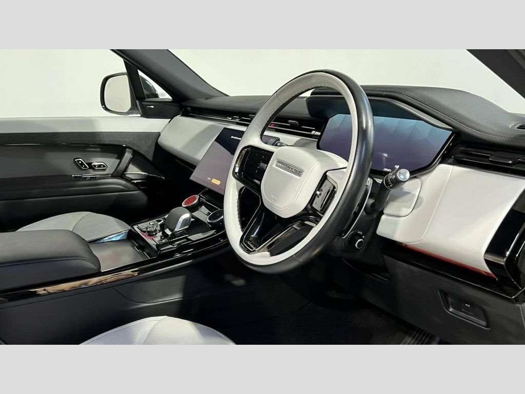 23" Alloy Wheels Pictured - Optional Extra. This incredible Range Rover Sport comes finished in Fuji White with Contrast Roof in Santorini Black and Exterior Black Pack. The exterior benefits from Privacy Glass, Red Calipers and Side Steps. Fuji White, 22in Alloy Wheels - Style 5127 - Satin D, Black Exterior Pack, Sliding Panoramic Roof, Privacy Glass, Red Brake Calipers, Black Contrast Roof, 12V Power Socket, 13.1in Touchscreen, 20-Way Electric Heated Memory Front Seat, 21in Alloy Wheels - Style 5126 - Satin D, 3D Surround Camera, 60-40 Seats with Power Recline and Loadt, ABS - Anti Lock Braking System, ATPC - All Terrain Progress Control, Adaptive Cruise Control with Steering As, Adaptive Dynamics, Air Quality Sensor, Airbags - Front Side, Aluminium Treadplates with Range Rover S, Android Auto, Apple CarPlay, Auto-Dimming Interior Rear View Mirror, Automatic Access Height, Automatic Headlight Levelling, Automatic Headlights,