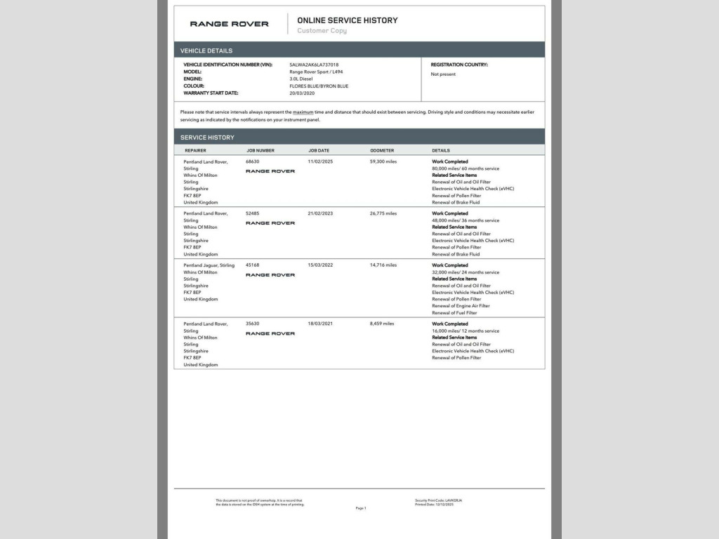 ONE OWNER FROM NEW, JUST BEEN SERVICED, HAD 4 PREVIOUS SERVICES @ LAND ROVER, FULL YEARS MOT, NO ADVISORIES, QUITE SIMPLY AN EXQUISITE EXAMPLE IN THE FLORES BLUE METALLIC COLOURWAY, FULL HEATED LEATHER UPHOLSTERY, 20 ALLOY WHEELS, NAVIGATION PRO PACKAGE, APPLE CARPLAY/ANDROID AUTO, PARK ASSIST + REVERSE PARKING CAMERA PLUS A TON MORE OPTIONS, COMPLETE WITH A MINIMUM OF 6 MONTHS RAC PLATINUM WARRANTY + 1 YEARS RAC BREAKDOWN COVER INCLUDED.