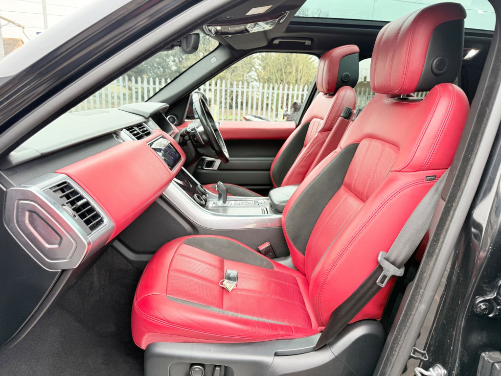 2 KEYS, RED INTERIOR, ULEZ, NAVIGATION, BLUETOOTH, APPLE/ANDROID CAR PLAY, GHOST, FRESH SERVICE (TOTAL 5 SERVICES), MOT 13/10/2026, REVERSE CAMERA, This 2019 Land Rover Range Rover Sport 3.0 SD V6 HSE Dynamic SUV with 63,700 miles on the clock is a powerful and fuel-efficient diesel vehicle that comes with a long MOT expiring on 13/10/2026, making it a reliable choice for any driver. With 5 seats and 5 doors, this SUV offers ample space for passengers and cargo, and it is also ULEZ compliant, making it suitable for driving in low emission zones. The car comes with modern features such as 12V Power Socket, Android Auto, Apple CarPlay, Bluetooth Connectivity, and DAB - Digital Audio Broadcast, ensuring a comfortable and connected driving experience. With 306 ps, this dynamic SUV delivers top-notch performance, making it a versatile and appealing option for any driver. v power socket, android auto, apple carplay, bluetooth connectivity, dab - digital audio broadcast, incontrol apps, incontrol protect, meridian sound system 380w, navigation pro, pro services and wi-fi hotspot, remote premium, touch pro duo, 16-way memory front seats, 60-40 folding rear seats, auto-dimming interior mirror, bright metal pedals, carpet mats, centre console with armrest, customer configurable single point entry, dark engine turned aluminium trim finisher, electrically adjustable steering column, extended leather upgrade, front door storage space, front and rear cupholders, front and rear grab handles, glovebox - lockable, heated front and rear seats, illuminated metal treadplates with brand-name script, interior ambient lighting, leather steering wheel with atlas bezel, loadspace compartment light, loadspace cover, loadspace mounting provisions, non smokers pack, powered gesture tailgate - boot lid, push button start, rain sensing windscreen wipers, rear centre armrest, satin chrome gearshift paddles, sunvisors with vanity mirrors, two-zone climate control, 21in alloy wheels - 5 split spoke style 5085 - gloss sparkle silver, body coloured roof, body coloured side sills and bumper corners, electric windows with one-touch open-close and anti-trap, engine cover, front and rear recovery eyes, hse badge, heated rear window, heated windscreen with heated washer jets, laminated acoustic front and toughened rear side glass, locking wheel nuts, power fold - heated door mirrors with memory and approach lights, rear fog lights, reduced section alloy spare wheel, sport badge in silver, side repeater indicators in mirror, standard roof, unpainted brake calipers - metal finish, abs - anti lock braking system, brake pre-fill, cbc - cornering brake control, customer configurable autolock, dsc - dynamic stability control, driver and passenger airbags, eba - emergency brake assist, ebd - electronic brake-force distribution, epb - electronic park brake, etc - electronic traction control, emergency braking, gradient release control, hdc - hill descent control, hill launch assist, isofix child seat anchor points, intrusion sensor, keyless entry, low traction launch, power operated child locks, rsc - roll stability control, seat belt pre-tensioners, secure tracker, tsa - trailer stability assist, atpc - all terrain progress control, adaptive dynamics, all terrain lnfo centre, cruise control and speed limiter, epas - electronic power assisted steering, electronic active differential with torque vectoring by braking, electronic air suspension with dynamic response, front and rear parking aid, gradient acceleration control - gac, lane departure warning, rear view camera, tpms - tyre pressure monitoring system, terrain response 2 with dynamic program, twin speed transfer box - high-low range, automatic headlights, follow me home lighting, front fog lights, matrix led headlights with signature drl