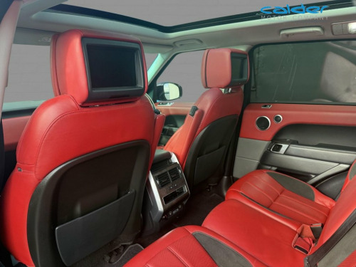 DUE IN VERY SOON. 2018 YR MDL New shape. Superb looking Range Rover Sport Finished in Santorini Black with Red and Ebony Semi Aniline Perforated Leather Upholstery. This car has had the Full Lumma Style Body Kit, 22" Gloss Black Alloy Wheels, Side Steps, Quad Exhaust Tips, LED Running Lights and various other Enhancements Fitted at a massive cost and it looks Fantastic for it! Huge Factory spec with Rear Seat Entertainment, Full Glass Panoramic Fixed Sunroof, Meridian Sound System, Satellite Navigation, Reversing Camera, DAB Tuner, Bluetooth with Audio Streaming and so much more. This car has a Full Service History. Black Exterior Pack, Fixed Panoramic Roof Including Powered B, Privacy Glass, Rear Seat Entertainment - 10in Screens, Santorini Black, Meridian Surround Sound System 825W, Semi Aniline Perforated Leather - Ebony-, Pixel LED Headlights with Signature DRL, 16-way Memory Front Seats, 2-Zone Automatic Climate Control, 21in Alloy Wheels - 5 Split Spoke Style , 60-40 Folding Rear Seats, ABS - Anti Lock Braking System, Adaptive Dynamics, ATPC - All Terrain Progress Control, Auto-Dimming Interior Mirror, Autonomous Emergency Braking, Bluetooth Phone Connection and Bluetooth, Body Coloured Door Handles, Body Coloured Roof, Body Coloured Side Sills and Bumpers, Bonnet Vent Frame - Gloss Black, Bonnet