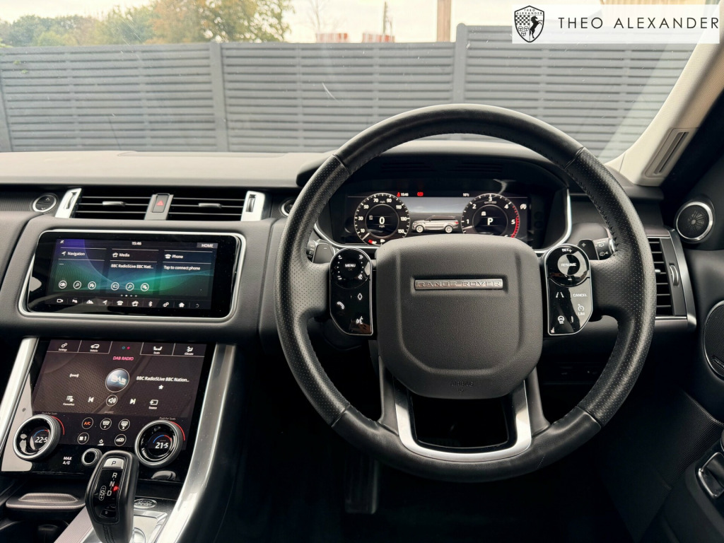 Theo Alexander are pleased to offer this Range Sport, presented in Santorini Black with Black leather interior and complete with full service history and 6 months full warranty.This Car Comes With Santorini Black MetallicBlack Leather 21'' Alloys Meridian Sound Heated Seats Front Heated Seats Rear Heated Steering Wheel Apple Play v power socket, bluetooth connectivity, dab - digital audio broadcast, incontrol apps, incontrol protect, meridian sound system 380w, navigation pro, pro services and wi-fi hotspot, remote premium, touch pro duo - dual 10in screens, 16-way memory front seats, 60-40 folding rear seats, aluminium front treadplates with range rover script, auto-dimming interior mirror, black gearshift paddles, carpet mats, centre armrest with cubby box, customer configurable single point entry, electrically adjustable steering column, front door storage space, front and rear cupholders, front and rear grab handles, glovebox - lockable, heated front and rear seats, interior ambient lighting, leather steering wheel, loadspace compartment light, loadspace cover, loadspace mounting provisions, non smokers pack, powered gesture tailgate - boot lid, push button start, rain sensing windscreen wipers, rear centre armrest, sunvisors with vanity mirrors, trim finisher - micro mesh aluminium, two-zone climate control, 20in alloy wheels - 5 split spoke style 5084 with silver finish, body coloured door handles, body coloured roof, bonnet vent frame - gloss black, bonnet vent insert - atlas, door mirrors - body coloured, electric windows with one-touch open-close and anti-trap, engine cover, front bumper - body coloured, front bumper corners - narvik black, front bumper frame - narvik black, front bumper mesh - gloss black, front bumper outer fin - gloss black, front grille frame - narvik black, front grille inner surround - atlas, front grille mesh edging - shadow atlas, front tow eye cover - body colour, grille mesh - gloss black, hse sdv6 badge, heated windscreen with heated washer jets, integrated exhaust finishers - stainless brushed, laminated front door - toughened rear door and quarter light glass, locking wheel nuts, mirror lower - gloss black, narvik black lower door claddings, power fold - heated door mirrors with memory and approach lights, range rover lettering - atlas, rear bumper corners - narvik black, rear bumper upper - body coloured, rear fog lights, rear tow eye cover - narvik black, rear tow eye cover surround - narvik black, reduced section alloy spare wheel, sport badge in silver, side a-d post finishers - window surrounds - gloss black, side fender vent fingers - atlas, side fender vent frame - gloss black, side repeater indicators in mirror, standard roof, tailgate finisher in noble chrome, unpainted brake calipers - metal finish, abs - anti lock braking system, brake pre-fill, cbc - cornering brake control, customer configurable autolock, dsc - dynamic stability control, driver and passenger airbags, eba - emergency brake assist, ebd - electronic brake-force distribution, epb - electronic park brake, etc - electronic traction control, emergency braking, gradient release control, hdc - hill descent control, hill launch assist, isofix child seat anchor points, intrusion sensor, keyless entry, low traction launch, power operated child locks, rsc - roll stability control, seat belt pre-tensioners, secure tracker, tsa - trailer stability assist, adaptive dynamics, cruise control and speed limiter, epas - electronic power assisted steering, electronic air suspension, front and rear parking aid, gradient acceleration control - gac, lane departure warning, rear view camera, single speed transfer box - high range only, tft virtual instrument panel, tpms - tyre pressure monitoring system, terrain response, follow me home lighting, front fog lights, matrix led headlights with signature drl