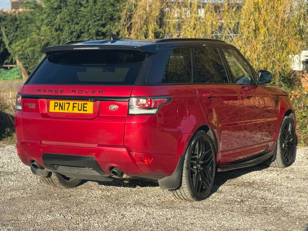2 KEYSFULL SERVICE HISTORY - 6 SERVICES - MOST RECENT SERVICE DONE 85,833 - SERVICE INTERVALS 6K, 13K, 27K, 39K, 52K, 85KLOGBOOKThis 2017 Land Rover Range Rover Sport SD V6 HSE offers a superb blend of capability and comfort, boasting a powerful 3.0L Diesel engine and a robust Four Wheel Drive system. As a Euro 6 compliant vehicle, it meets stringent emission standards, making it a responsible choice. The HSE trim level ensures a premium experience, complemented by features such as heated front and rear seats for all occupants, and a 2 Zone Automatic Climate Control system to maintain the perfect cabin temperature. For added convenience and safety, it includes front and rear park distance sensors with a visual display, and Bluetooth audio streaming for seamless connectivity on the go.The Range Rover Sport is designed for those who demand more from their vehicle, and this particular model excels with its impressive acceleration, reaching 0-60mph in just 6.8 seconds, demonstrating its dynamic performance. Its substantial 3500 kg towing weight capability means it's ready for any adventure or task, while the generous boot space provides ample room for luggage or equipment. Further enhancing its practicality are the front and rear recovery hooks, including a towbar, ensuring you are prepared for a variety of situations. These highlights collectively position this Range Rover Sport as a superior option for drivers seeking a versatile and high performing SUV. xed panoramic roof including powered blind, climate front seats with heated rear seats, 20 inch red brembo branded brake calipers - front only - non-branded rear, contrast painted roof - santorini black, privacy glass, red painted brake calipers, 22in alloy wheels - 5 split spoke style 504, 14-way driver - 14-way passenger style 3 powered seats with memory, 2-zone automatic climate control, 20 inch metal finish brake calipers, 20in alloy wheels - 5 split spoke style 520, 60-40 folding rear seats, 8in high resolution touch screen, abs - anti lock braking system, asl - active speed limiter, adaptive dynamics, aluminium treadplates with range rover lettering, amplifier - 250w, audio system - dab, auto-dimming interior mirror, auxillary device connectivity - full integrated streaming, auxillary power sockets - front - second row and load space - 12 volt, bluetooth audio streaming, bluetooth phone connection, bright twin tailpipes, cbc - cornering brake control, carry hook in load space, centre armrest with cubby box, climate control memory pre-set to drivers last temperature, colour coded mirror caps, cruise control, dsc - dynamic stability control, daytime running lights, door mirrors - power adjustable-heated-power fold with approach lights, driver and passenger airbags, driver and passenger sunvisor with illuminated vanity mirror, eba - emergency brake assist, ebd - electronic brake-force distribution, epas - speed proportional electric power assisted steering, epb - electronic park brake, etc - electronic traction control, electrical towing preparation, electronic cross linked air suspension with automatic load levelling, fcas - four corner air suspension, follow me home lighting, footrest, front door mini stowage pocket with rubber mat, front fog lights, front height-adjustable seat belts, front and rear carpet mats with edging, front and rear cupholders, front and rear grab handles, front and rear park distance sensors with visual display, front and rear recovery hooks, gesture tailgate, hdc - hill descent control, hdd premium navigation, hse badge, hazard warning lights under heavy braking, headrests - front with 2-way manual adjust, heated front and rear seats, heated windscreen with heated washer jets, isofix child seat anchor points, incontrol protect (3 year subscription from new), incontrol secure (3 year subscription from new), interior trim differential - tl3 - 5 colour themes, keyless entry, laminated hydrophobic front door - toughened rear door and quarter light glass, light atlas exterior trim finishers, loadspace compartment light, loadspace mounting provisions, locking wheel nuts, mp3 compatible audio hard disk server, map reading lights - front, metal roof, non smokers pack, oxford leather steering wheel with multifunction controls, paddle shift, park ventilation, parking aid - rear view camera, power adjustable steering column, power operated child locks, power windows - front and rear with remote power locking, rsc - roll stability control, rain sensing windscreen wipers, range rover audio system 250w, range rover smart key controls - remote lock-unlock-double lock-lights on tailgate open, rear centre armrest, rear lights - led, rear seat belts, rear seat fixed cushion, reduced section spare wheel and toolkit, remote power window locking, roller loadspace cover, roof - body coloured, sdv6 badge, sport badge in silver, seat belt reminder, seat map pockets, secure glove box stowage, single blade sunvisor, single speed transfer box - high range only, speakers x8, tft virtual instrument panel, tpms - tyre pressure monitoring system, terrain response, three point seat belt - all seats, trailer stability control, tri colour ambient mood lighting, trim finisher - micro mesh aluminium, two usb sockets - front and second row, user selectable screen savers, volumetric and perimetric alarm, xenon headlamps with led signature