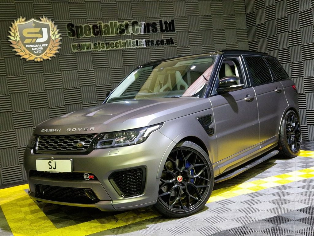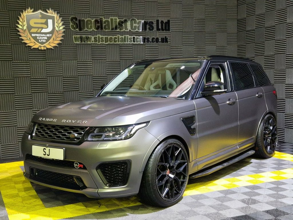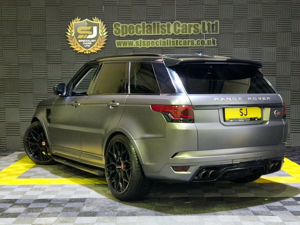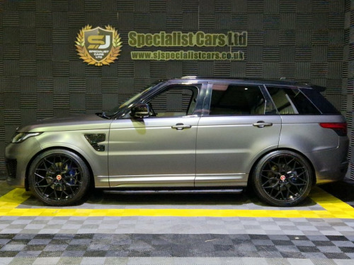 2015 / 65 Range Rover Sport SVR 5.0 Finished in Santorini Black (Wrapped in Satin Grey) 2 Tone Black and Grey Leather. 67000 Miles, FSH (Brand New Engine Fitted 15k Miles Ago) Thousand's Spent on Full Facelift Conversion Including : 23" Alloys, 23 MY Media System, Latest Rear Lights, Full Carbon Bonnet, Panoramic Sunroof, Fixed Side Steps, Plus Loads More, Must be viewed, a one off SVR !!. Warranties and Part Exchange Available. 12V Power Socket, 12V Power Socket in Second Row, 12V Socket in Loadspace, 20 Inch Red Brembo Branded Brake Caliper, 21in Alloy Wheels - 5 Split Spoke Style , 60-40 Folding Rear Seats, 8in Touch Screen, ABS - Anti Lock Braking System, ACC - Adaptive Cruise Control, ATPC - All Terrain Progress Control, Acoustic Laminated Windscreen, Active Seat Belts, Adaptive Dynamics, Adjustable Speed Limiter Device, Airbags - Curtain, Airbags - Driver, Airbags - Front Passenger, Airbags - Front Seat Thorax and Pelvis, Airbags - Front Side, Auto Dimming Rear View Mirror, Autobiography Badge, Automatic Headlights, Auxiliary Points - Front, Bluetooth Audio Streaming, Bluetooth Phone Connection, Body Coloured