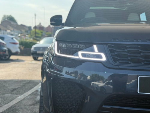 2019 Land Rover Range Rover Sport P575 V8 SVR. Only covered 24,000 miles backed by a full LandRover service history! it features a powerful 5.0 litre petrol engine and Four Wheel Drive, ensuring impressive performance. The SVR trim level signifies its top specification along with the following factory fitted extras - Sliding Panoramic Roof Including Powered Blind, Meridian Signature Sound System, Heads up display, Four-Zone Climate Control, Twin Blade Sunvisor with illuminated vanity mirrors and much more! The acceleration of this Range Rover Sport is truly remarkable, reaching 0-60mph in a mere 4.3 seconds, a testament to its V8 SVR performance. This rapid acceleration, combined with its substantial boot space, indicates a vehicle that excels in both dynamic driving and everyday usability, setting it apart from many other vehicles in its class. The inclusion of premium features like the Meridian sound system and panoramic roof further elevates the driving experience, offering a blend of exhilarating performance and refined comfort. Twin Blade Sunvisor with Illuminated Van, Head Up Display, Front Centre Console Cooler Compartment, Four-Zone Climate Control, Sliding Panoramic Roof Including Powered, Privacy Glass, 12V Power Socket, 21in Alloy Wheels - 5 Split Spoke Style , 360 Degree Parking Aid, 60-40 Folding Rear Seats, ABS - Anti Lock Braking System, ATPC - All Terrain Progress Control, Active Exhaust Control, Adaptive Cruise Control with Stop and Go, Adaptive Dynamics, All Terrain lnfo Centre, Aluminium Gearshift Paddles, Android Auto, Apple CarPlay, Auto-Dimming Interior Mirror, Auto-Dimming Power Fold - Heated Door Mi, Automatic Headlights, Blind Spot Monitor, Bluetooth Connectivity, Body Coloured Carbon Fibre Bonn
