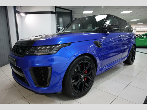 MEGA SPEC SVR JUST ARRIVED INTO STOCK! COVERING 56K MILES FROM NEW BACKED WITH FULL SERVICE HISTORY! INCREDIBLY RARE EXAMPLE! FINISHED IN SVO PREMIUM PALETTE VELOCITY BLUE! SPEC INCLUDES, DEPLOYABLE SIDE STEPS! SLIDE/TILT PANORAMIC GLASS ROOF, UPGRADED 22 INCH GLOSS BLACK ALLOY WHEELS, CARBON FIBRE EXTERIOR SURROUNDS WITH CARBON FIBRE EXPOSED BONNET, EXTENDED CARBON FIBRE TRIM FINISHER, FRONT CENTRE CONSOLE WITH COOLER COMPARTMENT (FRIDGE), EBONY SUEDECLOTH HEADLINING, CD/DVD PLAYER, THREE ZONE CLIMATE CONTROL, NARVIK BLACK CONTRAST PAINTED ROOF, HEATED LEATHER MULTI FUNCTION STEERING WHEEL, HEATED FRONT/REAR SEATS, ADAPTIVE CRUISE CONTROL, CONFIGURABLE AMBIENT INTERIOR LIGHTING, HEATED WINDSCREEN, PRIVACY GLASS, FRONT SEAT MEMORY, BLIND SPOT MONITORING, MERIDIAN PREMIUM SURROUND SOUND (825 WATTS), RED PAINTED BRAKE CALIPERS! RARE, INCREDIBLE EXAMPLE, PANORAMIC ROOF, PAN ROOF, GLASS ROOF, EXCEPTIONAL VALUE FOR MONEY, EARLY VIEWING IS ESSENTIAL TO AVOID DISAPPOINTMENT, VERY BEST COLOUR COMBINATION, COMPREHENSIVE WARRANTY OPTIONS AVAILABLE, AA BREAKDOWN COVER AVAILABLE, STUNNING SHOWROOM CONDITION, MUST BE SEEN NOT TO BE MISSED, BE VERY QUICK THIS GEM WILL SOON GO!, VIEW MORE PICS ON OUR WEBSITE, PLEASE CALL FOR FULL SPEC, SIMPLY STUNNING! 22in Alloy Wheels - 5 Split Spoke Style , Extended Carbon Fibre Trim Finisher, Privacy Glass, SVR Carbon Fibre Exterior Pack with Expo, Velocity