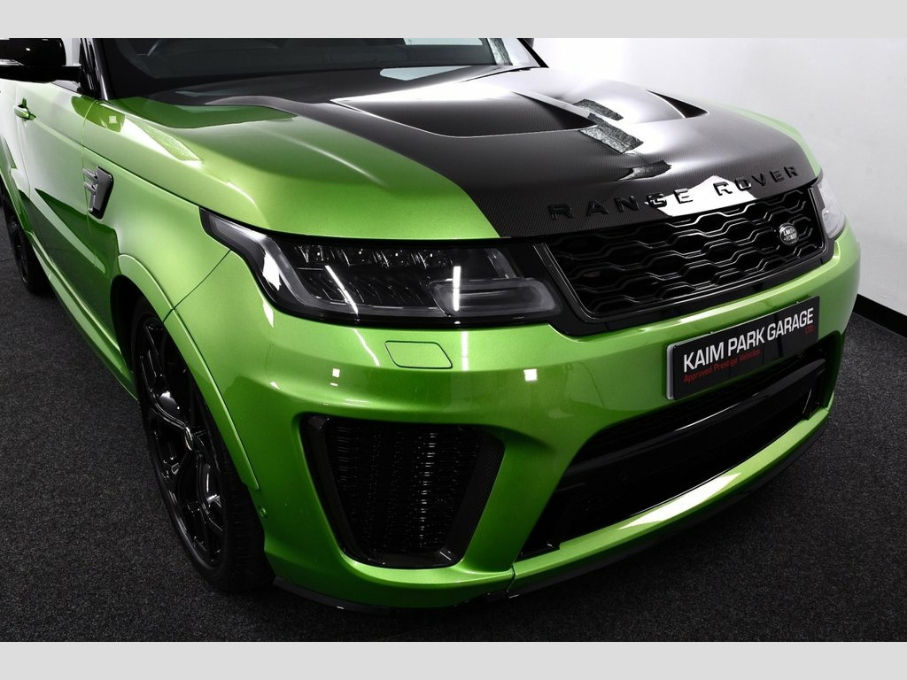 SVO Premium Palette Green with Perforated duo tone windsor leather - Ebony, Covered only 58k miles & backed with Full Service History, What a car this is ... We are delighted to offer to the market this 1 Off SVR finished in SVO paint upgrade and boasting an Unbelievable Spec list, Simply Stunning! THIS SVR COMES WITH THE FOLLOWING £17,775 EXTRA'S - 23" Overfinch GT alloy wheels in Gloss Black, SVR Carbon Fibre Exterior Pack with Exposed Carbon Fibre Bonnet, Powered Gesture Tailgate - Boot Lid, Privacy Glass, Hell Magno Green SVO paint, Ghost Autowatch II Security device, Extended Grand Black Veneer. STANDARD SVR FEATURES INCLUDE - Sliding Panoramic glass sunroof, Contrast roof - Black, Solar Attenuating Windscreen, Black stealth exterior pack, Switchable sports exhaust, Active exhaust control, Adaptive dynamics, Adaptive cruise control with Stop and Go, 360 Parking aid, Reversing camera, Driver condition monitor, Powered gesture tailgate/boot lid, Remote premium - Upgraded Incontrol remote app including remote climate control (engine dependent), remote lock + Unlock and remote beep + flash, Illuminated metal tread plates with brand name script, Power fold, auto-dimming, heated door mirrors with memory and approach lights, Configurable dynamics, SVR sports suspension with dynamic response (active roll control), Keyless entry, Navigation pro system with 10" touch screen, app interface and media storage, Incontrol pro services and wifi hotspot, Blue 23" Overfinch GT alloy wheels in Gl, SVR Carbon Fibre Exterior Pack with Expo, Powered Gesture Tailgate - Boot Lid, Privacy Glass, British Racing Green 5, Ghost Autowatch II Security device, Extended Grand Black Veneer, 22in Alloy Wheels - 5 Split Spoke Style