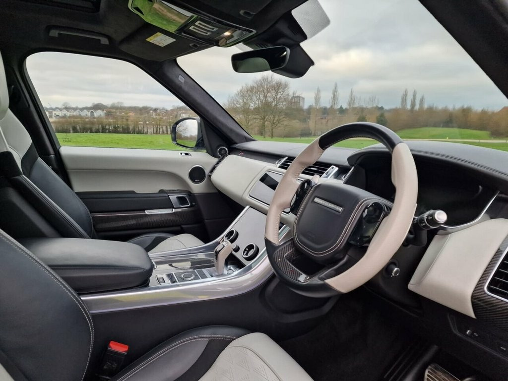 This 2019 Land Rover Range Rover Sport P575 V8 SVR boasts exceptionally low mileage for its age, having covered just 40169 miles. This impressive example features the SVR trim and is powered by a potent 5.0 litre petrol engine, delivering exhilarating performance through its Four Wheel Drive system. It meets Euro 6 emission standards and is capable of towing up to 3000 kg. Notable features include an exposed carbon fibre bonnet as part of the SVR Carbon Fibre Exterior Pack, a Head Up Display for enhanced driver awareness, and a sliding panoramic roof with a powered blind, offering an open and airy cabin experience. Automatic headlights ensure optimal visibility in varying conditions. The performance of this Range Rover Sport is truly a standout, with a rapid 0-60mph acceleration time of just 4.3 seconds, indicating a superior driving experience compared to many similar vehicles. This capability, combined with its luxurious appointments and robust towing capacity, makes it a compelling choice for those seeking both performance and practicality. 12V Power Socket, 21in Alloy Wheels - 5 Split Spoke Style , 22in Alloy Wheels - 5 Split Spoke Style , 360 Degree Parking Aid, 60-40 Folding Rear Seats, ABS - Anti Lock Braking System, Active Exhaust Control, Adaptive Cruise Control with Stop and Go, Adaptive Dynamics, All Terrain lnfo Centre, Aluminium Bonnet, Aluminium Gearshift Paddles, Android Auto, Apple CarPlay, ATPC - All Terrain Progress Control, Auto-Dimming Interior Mirror, Auto-Dimming Power Fold - Heated Door Mi, Automatic Headlights, Blind Spot Monitor, Bluetooth Connectivity, Body Coloured Side Sills and Bumper Corn, Bonnet - Exposed Carbon Fibre, Brake Pre-fill, Bright Metal Pedals, CBC - Cornering Brake Control, Centre Console