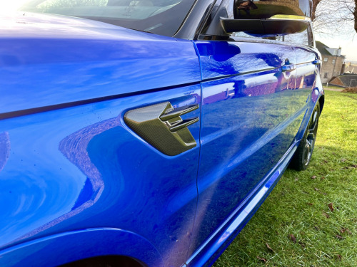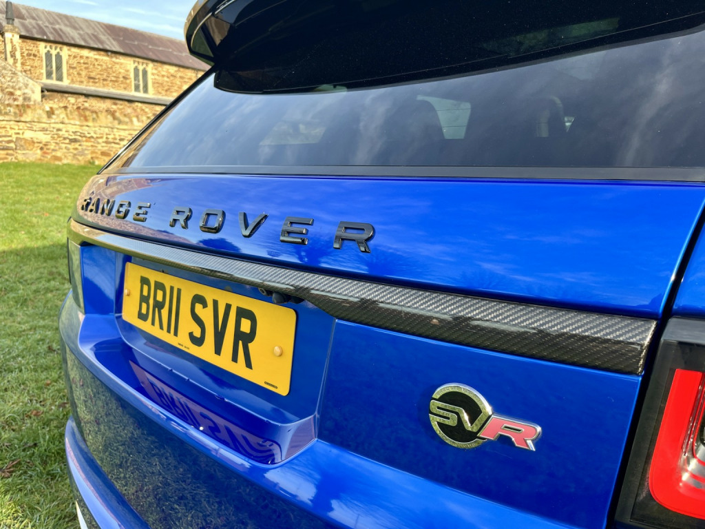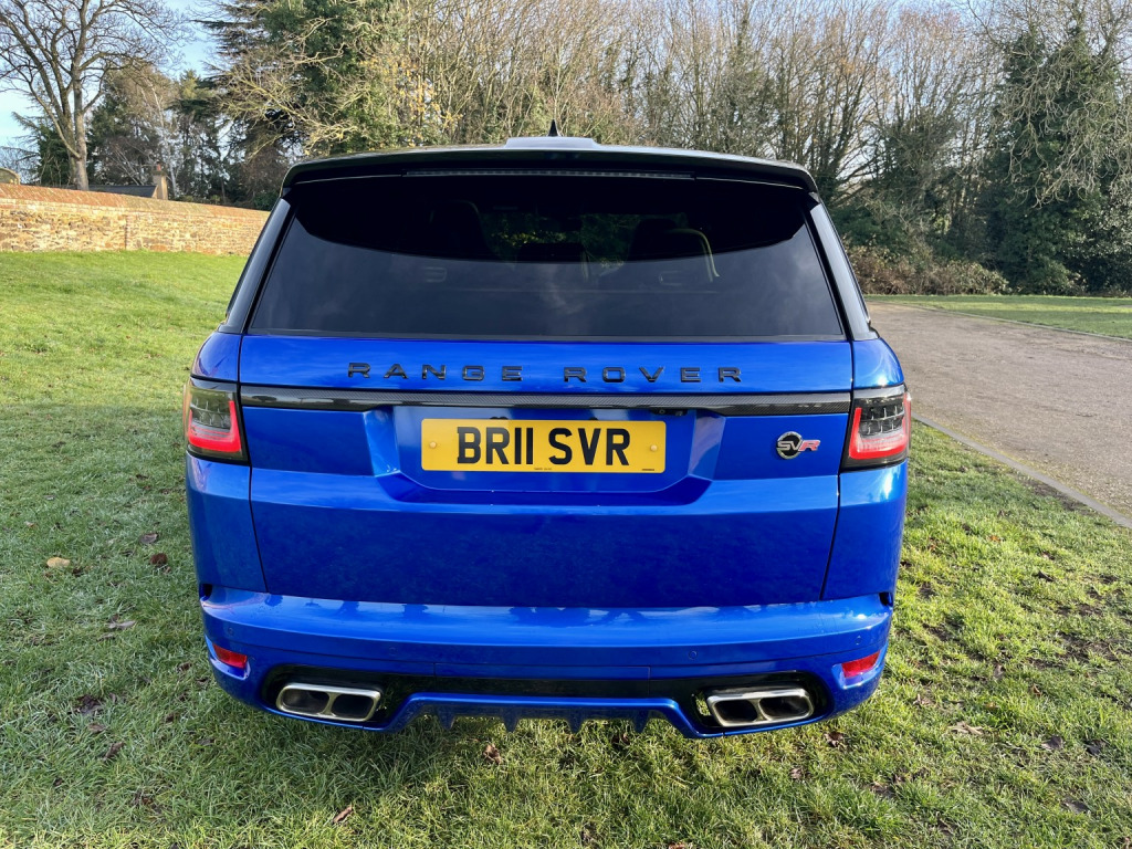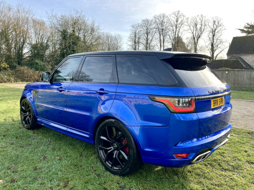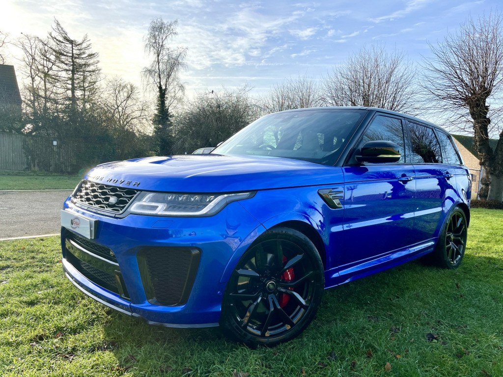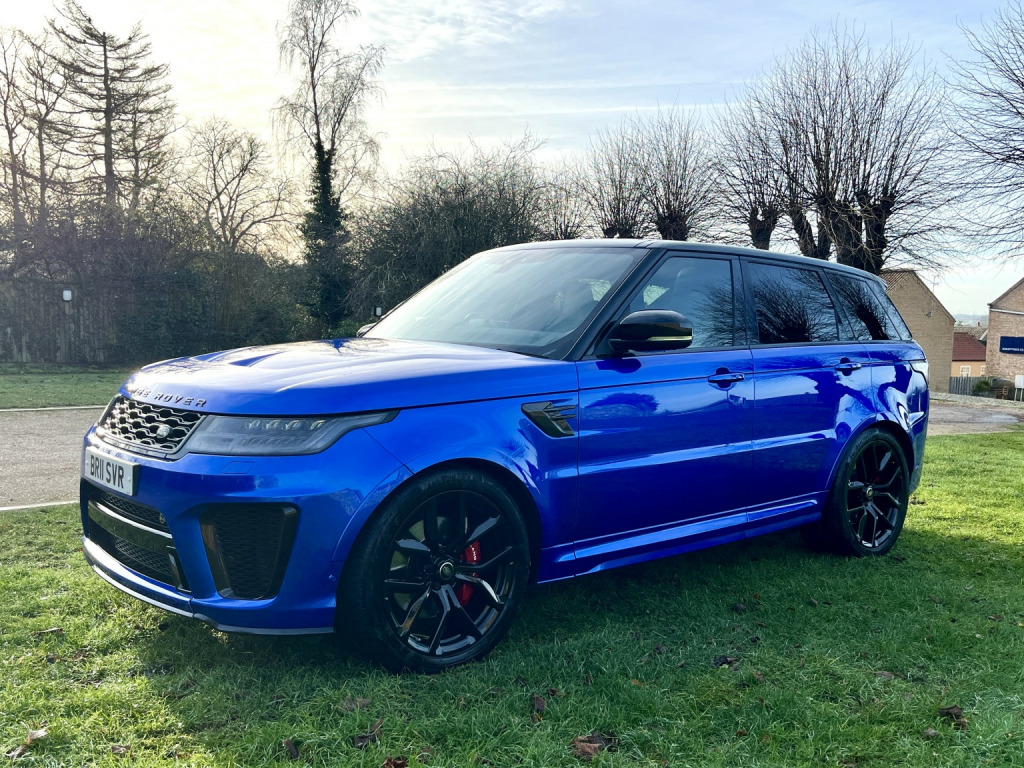 Stunning Range Rover Sport SVR in SVO Premium Pallette blue with two tone leather interior, this car is in immaculate condition inside and out, genuine low miles with a full Landrover Service history, has been meticulously maintained being serviced at 26/09/2025, 23/08/2024, 30/08/2023, 03/08/2022, 16/09/2021, 10/10/2020, 08/06/2019,, 25303 miles, 21924 miles, 18778 miles, 15467 miles, 11219 miles and at 6042 miles with all service receipts present, all previous health checks here and always been green, had all items serviced at Maindealer, 2 keys, top spec model with panoramic opening sunroof, heads up display, carbon fibre interior and exterior, sat nav, 360 parking aid, 360 cameras, heated and cooled seats, reverse camera, carbon bonnet, two tone leather, heated steering wheel, memory heated seats and much more, cherished example with no damage, scratches or scuffs on the paint work or wheels, only 2 former keepers on the v5, looks, sounds and drives perfect, comes with private SVR number plate, immaculate inside and out, would confidently say this is the best and cleanest example out there, has to be seen