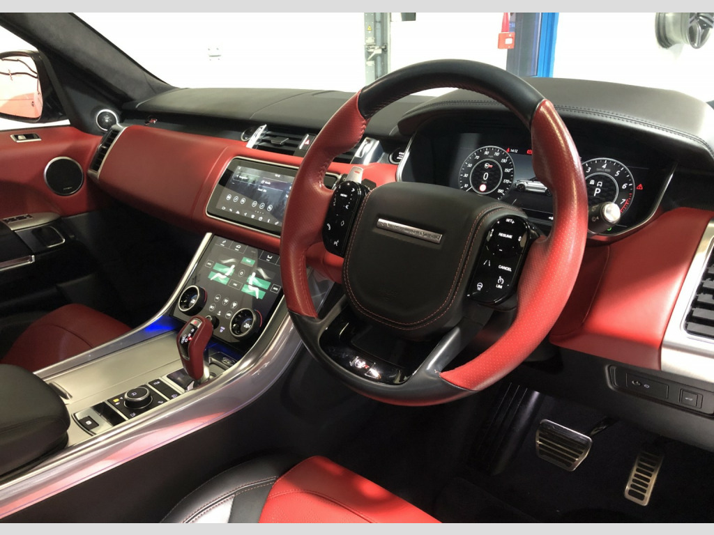 2021/71 Automatic 23166 miles. Here at MS Supercars we are delighted to offer this absolutely stunning Range Rover Sport SVR. This super low mileage example is finished in Eiger Grey paintwork and is complemented with Red and Black leather interior. The car is fully loaded with the following factory options : HEADS UP DISPLAY, PANORAMIC OPENING SUNROOF, CLIMATE FRONT SEATS (HEATED AND COOLED) HEATED REAR SEATS, 4 ZONE CLIMATE CONTROL, DOUBLE GLAZED GLASS, 22 INCH POLISHED ALLOY WHEELS, REAR CAMERA, MERIDIAN SURROUND SOUND SYSTEM, ELECTRIC TAILGATE, PRIVACY GLASS, FULLY ELECTRIC SEATS WITH DRIVER AND PASSENGER MEMORY, DIGITAL COCKPIT, MULTI FUNCTION STEERING WHEEL, CRUISE CONTROL, HEATED STEERING WHEEL, ELECTRIC STEERING COLUMN, SVR EMBOSSED HEADRESTS, BLUETOOTH TELEPHONE CONNECTION, CRUISE CONTROL, BLUETOOTH MUSIC STREAMING, DAB RADIO, SATELLITE NAVIGATION, FRONT AND REAR PARK ASSIST, XENON HEADLIGHTS and CARPET MATS. This car has been serviced every year and was last serviced at 19510 miles. This really is a stunning example with a fantastic colour combination and lovely spec. All part exchanges will be considered and finance is available subject to status. Please do not hesitate to contact us regarding this beauty. Telephone 01522 688867 / 07770 932592
