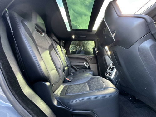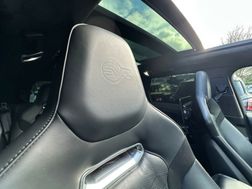 ON V CAR CAT N!. 12V Power Socket, 21in Alloy Wheels - 5 Split Spoke Style 5091 with Satin Polish Finish, 360 Degree Parking Aid, 60-40 Folding Rear Seats, ABS - Anti Lock Braking System, ATPC - All Terrain Progress Control, Active Exhaust Control, Adaptive Cruise Control with Stop and Go, Adaptive Dynamics, All Terrain lnfo Centre, Aluminium Bonnet, Aluminium Gearshift Paddles, Android Auto, Apple CarPlay, Auto-Dimming Interior Mirror, Auto-Dimming Power Fold - Heated Door Mirrors with Memory and Approach Lights, Automatic Headlights, Blind Spot Monitor, Bluetooth Connectivity, Body Coloured Side Sills and Bumper Corners, Brake Pre-fill, Bright Metal Pedals, CBC - Cornering Brake Control, Centre Console with Armrest, Clear Exit Monitor, Configurable Dynamics, Configurable Interior Mood Lighting, Contrast Painted Roof - Narvik Black, Customer Configurable Autolock, Customer Configurable Single Point Entry, DAB - Digital Audio Broadcast, DSC - Dynamic Stability Control, Driver Condition Monitor, Driver and Passenger Airbags, EBA - Emergency Brake Assist, EBD - Electronic Brake-Force Distribution, EPAS - Electronic Power Assisted Steering, EPB - Electronic Park Brake, ETC - Electronic Traction Control, Electric Windows with One-Touch Open-Close and Anti-Trap, Electrically Adjustable Steering Column, Electronic Active Differential with Torque Vectoring by Braking, Emergency Braking, Extended Leather Upgrade, Extended Satin Brushed Aluminium Trim Finisher, Follow Me Home Lighting, Front Door Storage Space, Front and Rear Cupholders, Front and Rear Grab Handles, Front and Rear Recovery Eyes, Glovebox - Lockable, Gradient Acceleration Control - GAC, Gradient Release Control, HDC - Hill Descent Control, Heated Front and Rear Seats, Heated Rear Window, Heated Steering Wheel, Heated Windscreen with Heated Washer Jets, High Speed Emergency Braking, Hill Launch Assist, ISOFIX Child Seat Anchor Points, Illuminated Metal Treadplates with Brand-Name Script, InControl Apps, InControl Protect, Interactive Driver Display, Intrusion Sensor, Keyless Entry, Laminated Acoustic Front and Toughened Rear Side Glass, Lane Departure Warning, Lightweight Exhaust System, Loadspace Compartment Light, Loadspace Cover, Loadspace Mounting Provisions, Locking Wheel Nuts, Low Traction Launch, Meridian Surround Sound System 825W, Navigation Pro, Non Smokers Pack, Pixel LED Headlights with Signature DRL, Power Operated Child Locks, Powered Tailgate, Premium Carpet Mats, Pro Services and Wi-Fi Hotspot, Push Button Start, RSC - Roll Stability Control, Rain Sensing Windscreen Wipers, Rear Bumper with Integrated Quad Exhaust Finishers, Rear Centre Armrest, Rear Fog Lights, Rear Traffic Monitor, Rear View Camera, Red SV Painted Brake Calipers, Remote Premium, SVR Badge, SVR Engine Cover, SVR Exterior Styling, SVR Leather Steering Wheel, SVR Performance Seats, Seat Belt Pre-Tensioners, Secure Tracker Pro (12 Month Subscription From New), Side Repeater Indicators in Mirror, Smartphone Pack, Sports Suspension with Dynamic Response, Standard Roof, Sunvisors with Vanity Mirrors, Switchable Sports Exhaust, TPMS - Tyre Pressure Monitoring System, TSA - Trailer Stability Assist, Terrain Response 2 with Dynamic Program, Three-Zone Climate Control, Touch Pro Duo, Traffic Sign Recognition and Adaptive Speed Limiter, Twin Speed Transfer Box - High-Low Range, Tyre Repair System.