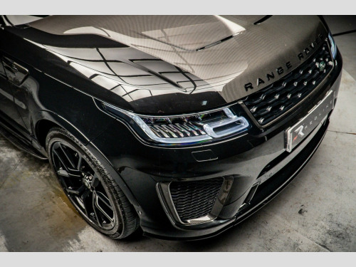 This 2021 Land Rover Range Rover Sport P575 V8 SVR Carbon Edition presents a compelling blend of performance and luxury. As a Euro 6 compliant vehicle, it features a powerful 5.0 litre petrol engine paired with a Four Wheel Drive system, ensuring capability in various conditions. The SVR Carbon Edition trim level is distinguished by its SVR Performance Seats, complete with memory function, and a striking Sliding Panoramic Roof that includes an opening panoramic sunroof. For practicality, it offers front and rear recovery eyes, a towbar, and a substantial boot space, complemented by a towing weight of 3000 kg.The driving experience is further enhanced by advanced technology, including a 360 Degree Parking Aid with a camera system and a Blind Spot Monitor for added safety. This Range Rover Sport distinguishes itself with its rapid acceleration, achieving 0-60mph in just 4.3 seconds, a testament to its V8 engine's prowess. These features collectively position this vehicle as a superior choice for those seeking a dynamic and well equipped SUV.. 12V Power Socket, 22in Alloy Wheels - 5 Split Spoke Style 5083 with Gloss Black Finish, 360 Degree Parking Aid, 60-40 Folding Rear Seats, ABS - Anti Lock Braking System, ATPC - All Terrain Progress Control, Active Exhaust Control, Adaptive Cruise Control with Stop and Go, Adaptive Dynamics, All Terrain lnfo Centre, Aluminium Gearshift Paddles, Android Auto, Apple CarPlay, Auto-Dimming Interior Mirror, Auto-Dimming Power Fold - Heated Door Mirrors with Memory and Approach Lights, Automatic Headlights, Blind Spot Monitor, Bluetooth Connectivity, Body Coloured Side Sills and Bumper Corners, Bonnet - Exposed Carbon Fibre, Brake Pre-fill, Bright Metal Pedals, CBC - Cornering Brake Control, Carbon Fibre Engine Cover, Centre Console with Armrest, Clear Exit Monitor, Configurable Dynamics, Configurable Interior Mood Lighting, Contrast Painted Roof - Narvik Black, Customer Configurable Autolock, Customer Configurable Single Point Entry, DAB - Digital Audio Broadcast, DSC - Dynamic Stability Control, Driver Condition Monitor, Driver and Passenger Airbags, EBA - Emergency Brake Assist, EBD - Electronic Brake-Force Distribution, EPAS - Electronic Power Assisted Steering, EPB - Electronic Park Brake, ETC - Electronic Traction Control, Electric Windows with One-Touch Open-Close and Anti-Trap, Electrically Adjustable Steering Column, Electronic Active Differential with Torque Vectoring by Braking, Emergency Braking, Extended Carbon Fibre Trim Finisher, Extended Leather Upgrade, Follow Me Home Lighting, Front Door Storage Space, Front and Rear Cupholders, Front and Rear Grab Handles, Front and Rear Recovery Eyes, Glovebox - Lockable, Gradient Acceleration Control - GAC, Gradient Release Control, HDC - Hill Descent Control, Heated Front and Rear Seats, Heated Rear Window, Heated Steering Wheel, Heated Windscreen with Heated Washer Jets, High Speed Emergency Braking, Hill Launch Assist, ISOFIX Child Seat Anchor Points, Illuminated Metal Treadplates with Brand-Name Script, InControl Apps, InControl Protect, Interactive Driver Display, Intrusion Sensor, Keyless Entry, Laminated Acoustic Front and Toughened Rear Side Glass, Lane Departure Warning, Lightweight Exhaust System, Loadspace Compartment Light, Loadspace Cover, Loadspace Mounting Provisions, Locking Wheel Nuts, Low Traction Launch, Meridian Surround Sound System 825W, Navigation Pro, Non Smokers Pack, Pixel LED Headlights with Signature DRL, Power Operated Child Locks, Powered Gesture Tailgate - Boot Lid, Premium Carpet Mats, Pro Services and Wi-Fi Hotspot, Push Button Start, RSC - Roll Stability Control, Rain Sensing Windscreen Wipers, Rear Bumper with Integrated Quad Exhaust Finishers, Rear Centre Armrest, Rear Fog Lights, Rear Traffic Monitor, Rear View Camera, Red SV Painted Brake Calipers, Remote Premium, SVR Badge, SVR Carbon Fibre Exterior Pack with Exposed Carbon Fibre Bonnet, SVR Exterior Styling, SVR Leather Steering Wheel, SVR Performance Seats, Seat Belt Pre-Tensioners, Secure Tracker Pro (12 Month Subscription From New), Side Repeater Indicators in Mirror, Smartphone Pack, Sports Suspension with Dynamic Response, Standard Roof, Sunvisors with Vanity Mirrors, Switchable Sports Exhaust, TPMS - Tyre Pressure Monitoring System, TSA - Trailer Stability Assist, Terrain Response 2 with Dynamic Program, Three-Zone Climate Control, Touch Pro Duo, Traffic Sign Recognition and Adaptive Speed Limiter, Twin Speed Transfer Box - High-Low Range, Tyre Repair System, Santorini Black, Exposed Carbon Bonnet, Sliding Panoramic Roof, Privacy Glass.