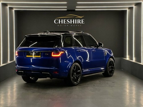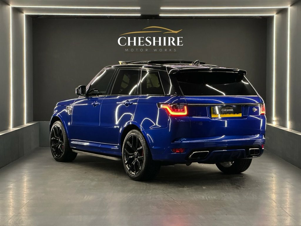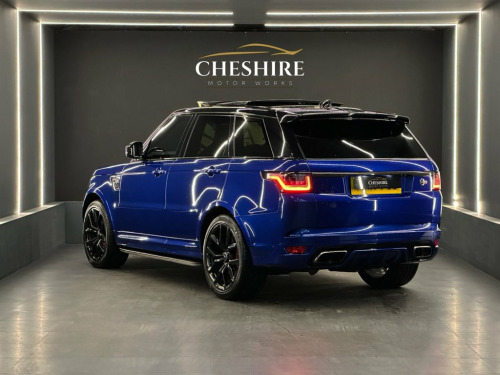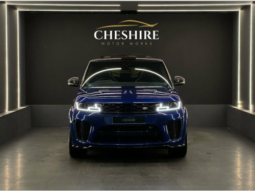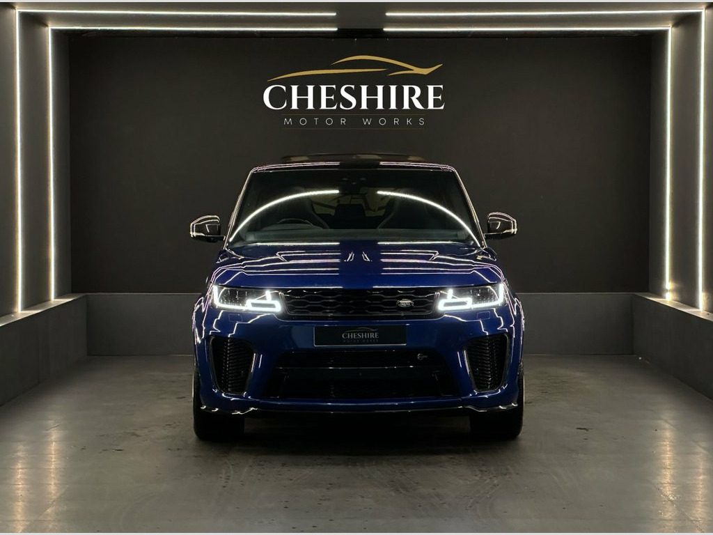 Cheshire Motor Works are delighted to present this stunning Land Rover Range Rover SVR finished in the stunning Estoril Blue paint. This vehicle features a 5.0 V8 supercharged engine paired with the smooth automatic gearbox. The SVR meets the latest Euro 6 emission requirements. This vehicle was first registered in 2017. This Range Rover SVR is comprehensively equipped with a range of sought-after features & modifications including; * Aftermarket Custom Exhaust * Panoramic Tilt & Slide Roof * 22" Alloy Wheels Finished In Black * Carbon Fibre Exterior * Soft Close Doors * Heated Seats & Steering Wheel * Electric Memory Seats * Air Suspension * Apple CarPlay & Android Auto * Ambient Interior Lighting * Cruise Control * Privacy Glass * Reversing Camera *Additionally offering a high level of specification as standard, ensuring both luxury and practicality. For added peace of mind, this vehicle comes with service history. At Cheshire Motor Works, we take exceptional care in our vehicle preparation standards. This Range Rover SVR has passed an extensive 156-point inspection heath check, has been fully detailed. Additionally, we will provide a complimentary platinum 6-month warranty with this vehicle, if the manufacturer's warranty is no longer valid. You have the option to extend this coverage up to 48 months for continued peace of mind. Paint protection options are also available to help maintain its pristine condition. We would be delighted for you Estoril Blue, Extended Grand Black Veneer, Four-Zone Climate Control, Soft Door Close, Suedecloth Headlining - Ebony, SVR Carbon Fibre Exterior Pack, Sliding Panoramic Roof Including Powered, Privacy Glass, 22in Alloy Wheels - 5 Split Spoke Style , 21in Alloy Wheels - 5 Split Spoke Style , 360 Degree Parking Aid, 60-40 Folding Rear Seats, ABS - Anti Lock Braking System, ATPC - All Terrain Progress Control, Active Sports Exhaust, Adaptive Cruise Control with Queue Assis, Adaptive Dynamics, Aluminium Gearshift Paddles, Auto-Dimming Exterior Mirrors, Auto-Dimming Interior Mirror, Autonomous Emergency Braking, Blind Spot Monitor, Bluetooth Phone Connection and Bluetooth, Body Coloured Carbon Fib