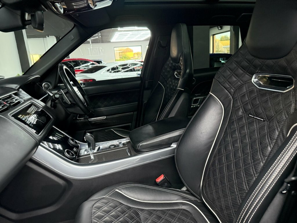 Here we have a Stunning 2018 Land Rover Range Rover Sport 5.0 V8 SVR P575 Auto 4WD, finished off beautifully with a custom Urban Automotive interior and Urban wheels, giving the car an incredibly strong and aggressive road presence while still retaining the luxury feel you expect from an SVR. The car has covered only 36,000 miles from new and benefits from a Land Rover online service record, showing services carried out at 8,000 miles, 19,000 miles, and a major service at 30,000 miles. For total peace of mind, the vehicle will also receive a fresh service and be supplied with a fresh 12 months MOT prior to sale, bringing it fully up to date for the next owner. The car comes complete with 2 keys and the Land Rover book pack. It will also be supplied with a warranty included, with the option to extend up to 3 years for additional peace of mind — please ask us for more details and we will be happy to discuss. This SVR also benefits from a great factory specification, with £4,890 worth of optional extras, including: 22" Alloy Wheels finished in Gloss Black – £2,140 Extended Carbon Fibre Trim Finisher – £1,640 Soft Door Close – £470 Privacy Glass – £400 Front Centre Console Refrigerator Compartment – £240 We can also offer G-Techniq Crystal ceramic coating for £399 — please let us know if you would like this applied to your car. 22in Alloy Wheels - with Gloss Black Fin, 360 Degree Parking Aid, Adaptive Cruise Control with Stop and Go, DAB - Digital Audio Broadcast, Extended Carbon Fibre Trim Finisher, Front Centre Console Refrigerator Compar, Heated Front and Rear Seats, Heated Steering Wheel, Heated Windscreen with Heated Washer Jet, Lane Departure Warning, Meridian Surround Sound System 825W, Privacy Glass, Sliding Panoramic Roof Including Powered, Soft Door Close