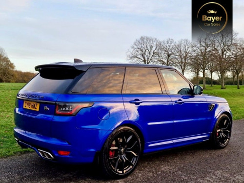 EXCELLENT VALUE - SVO PREMIUM PALLETTE PAINTWORK! STUNNING! This 2018 Land Rover Range Rover Sport P575 V8 SVR is a remarkable example of performance and capability. Powered by a potent 5.0 litre petrol engine and featuring a robust Four Wheel Drive system, this Euro 6 compliant vehicle is built for adventure. Its SVR trim level signifies a focus on dynamic driving, while the 3000 kg towing weight ensures it can handle substantial loads. Inside, occupants are treated to Four Zone Climate Control for personalised comfort, and the convenience of Heated and Cooled Front Seats complemented by Heated Rear Seats. Navigating tight spaces or hitching a trailer is made effortless with the 360 Degree Surround Camera System and the Electrically Deployable Towbar. Furthermore, Wade Sensing technology provides added confidence when venturing off the beaten track. The performance of this Range Rover Sport is truly exceptional, highlighted by its rapid 0-60mph acceleration in just 4.3 seconds. This impressive speed demonstrates its superior engineering and power delivery compared to many other vehicles in its class. The combination of its advanced features, powerful engine, and exceptional acceleration makes this 2018 Range Rover Sport P575 V8 SVR a standout choice for those seeking a blend of luxury, performance, and all terrain ability. 12V Power Socket, 21in Alloy Wheels - 5 Split Spoke Style , 22in Alloy Wheels - 5 Split Spoke Style , 360 Degree Parking Aid, 360 Degree Surround Camera System, 60-40 Folding Rear Seats, ABS - Anti Lock Braking System, Active Exhaust Control, Adaptive Cruise Control with Stop and Go, Adaptive Dynamics, Aluminium Gearshift Paddles, ATPC - All Terrain Progress Control, Auto-Dimming Interior Mirror, Auto-Dimming Power Fold - Heated Door Mi, Blind Spot Monitor, Bluetooth Connectivity, Body Coloured Carbon Fibre Bonnet, Body Coloured Door Handles, Body Coloured Lower Door Claddings, Body Coloured Side Sills and Bumper Corn, Bonnet Vent Frame - Gloss Black, Bonnet Vent Insert - Narvik Black, Brake