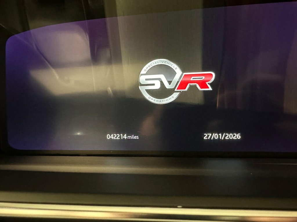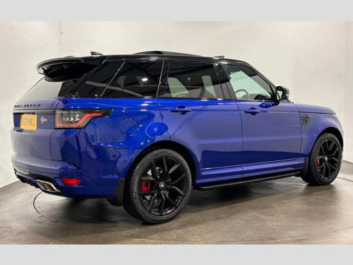 This 2019 Land Rover Range Rover Sport P575 V8 SVR boasts exceptionally low mileage for its age, having covered just 42,214 miles. This impressive example features a powerful 5.0 litre petrol engine and a Four Wheel Drive drivetrain, meeting Euro 6 emission standards. It offers a substantial towing weight of 3000 kg. Inside, you'll find a host of premium features including Keyless Entry, Bluetooth Connectivity, and a Meridian Surround Sound System delivering 825W of audio. For effortless manoeuvring, it is equipped with a 360 Degree Parking Aid and Adaptive Cruise Control with Stop and Go functionality. The performance of this Range Rover Sport SVR is truly remarkable, accelerating from 0 to 60mph in a mere 4.3 seconds. This rapid acceleration demonstrates its superior capability compared to many other vehicles in its class. The combination of its potent V8 engine, sophisticated all wheel drive system, and advanced driver aids ensures a driving experience that is both exhilarating and reassuring, making it a standout choice for those seeking performance and luxury. 12V Power Socket, 21in Alloy Wheels - 5 Split Spoke Style , 22in Alloy Wheels - 5 Split Spoke Style , 360 Degree Parking Aid, 360 Degree Surround Camera System, 60-40 Folding Rear Seats, ABS - Anti Lock Braking System, Active Exhaust Control, Adaptive Cruise Control with Stop and Go, Adaptive Dynamics, All Terrain lnfo Centre, Aluminium Gearshift Paddles, ATPC - All Terrain Progress Control, Auto-Dimming Interior Mirror, Auto-Dimming Power Fold - Heated Door Mi, Automatic Headlights, Blind Spot Monitor, Bluetooth Connectivity, Body Coloured Carbon Fibre Bonnet, Body Coloured Door Handles, Body Coloured Lower Door Claddings, Body Coloured Side Sills and Bumper Corn, Bonnet Vent Frame - Gloss