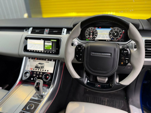 This 2018 Land Rover Range Rover Sport P575 V8 SVR boasts exceptionally low mileage for its age, having covered just 35,500 miles. This Euro 6 compliant model features a powerful 5.0 litre petrol engine and a Four Wheel Drive drivetrain, ensuring capability in various conditions. Its vehicle history check is clear, offering peace of mind. Notable features include a Meridian Surround Sound System with 825W output, a 360 degree parking aid complete with a camera system, and a rear view camera for enhanced visibility. Adaptive Cruise Control with Queue Assist and front and rear parking aids further contribute to a refined driving experience. The SVR trim signifies a performance focused variant, and this Range Rover Sport certainly delivers with an impressive 0-60mph acceleration time of just 4.3 seconds. This rapid acceleration capability sets it apart from many other vehicles in its class. Furthermore, its substantial towing weight of 3000 kg makes it a versatile choice for those needing to tow. Privacy Glass, 21in Alloy Wheels - 5 Split Spoke Style , 360 Degree Parking Aid, 60-40 Folding Rear Seats, ABS - Anti Lock Braking System, ATPC - All Terrain Progress Control, Active Sports Exhaust, Adaptive Cruise Control with Queue Assis, Adaptive Dynamics, Aluminium Gearshift Paddles, Auto-Dimming Exterior Mirrors, Auto-Dimming Interior Mirror, Autonomous Emergency Braking, Blind Spot Monitor, Bluetooth Phone Connection and Bluetooth, Body Coloured Carbon Fibre Bonnet, Body Coloured Door Handles, Body Coloured Lower Door Claddings, Body Coloured Side Sills and Bumpers, Bonnet Vent Frame - Gloss Black, Bonnet Vent Insert - Narvik Black, Bonnet Vents - Gloss Black, Bright Metal Pedals, CBC