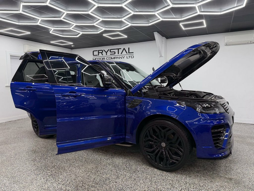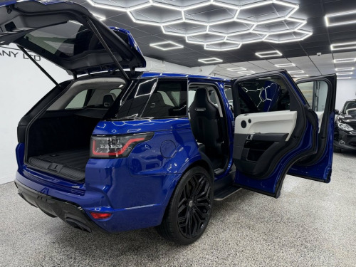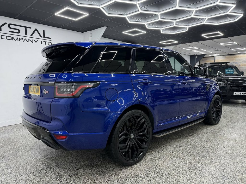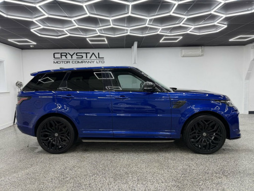 Crystal motor company are delighted to offer for sale this beautifully presented 2019 LAND ROVER RANGE ROVER SPORT 5.0 P575 V8 SVR SUV 5dr Petrol Auto 4WD Euro 6 (s/s) (575 ps) finished in ESTORIL BLUE. This car comes with TWO KEYS, THREE FORMER KEEPERS, SERVICE HISTORY, GHOST IMMOBILISER. This car is equipped with 23" URBAN ALLOY WHEELS, FRONT AND REAR PARKING SENSORS, REAR REVERSING CAMERA, ELECTRIC REAR TAILGATE, ELECTRIC FOLDING WING MIRRORS, BLIND SPOT ASSIST, MATRIX HEADLIGHTS, EXTERIOR CARBON FIBRE PACK, URBAN EXTERIOR BODYKIT, OPENING PANORAMIC ROOF, TWO TONE BLACK AND WHITE LEATHER INTERIOR, ELECTRIC FRONT SEATS, MEMORY FRONT SEATS, HEATED FRONT SEATS, ELECTRIC ADJUSTABLE STEERING WHEEL, PADDLE SHIFT, ADAPTIVE CRUISE CONTROL, HEATED STEERING WHEEL, VIRTUAL COCKPIT, MERIDIAN SOUND SYSTEM, AMBIENT LIGHTING (10 COLOUR CHOICE), ALCANTARA HEADLING, DAB RADIO, BLUETOOTH AUDIO, BLUETOOTH PHONE CONNECTION, SATNAV, APPLE CARPLAY, ANDROID AUTO. The car is 100% HPi clear. Part exchange and finance are available and all major credit and debit cards accepted. Crystal Motor Company Ltd Used Programme includes a full PDI inside and out, MOT, mileage certificate and a full inside and out valet. You can request a personalised video with attention given to any specifics you would like a better view of and we will be pleased to assist you. Likewise, we offer our customers a free collection service. Our journey began in 1996 with the aim to deliver the best possible customer exp 12V Power Socket, 21in Alloy Wheels - 5 Split Spoke Style , 360 Degree Parking Aid, 60-40 Folding Rear Seats, ABS - Anti Lock Braking System, Active Exhaust Control, Adaptive Cruise Control with Stop and Go, Adaptive Dynamics, All Terrain lnfo Centre, Aluminium Gearshift Paddles, ATPC - All Terrain Progress Control, Auto-Dimming Interior Mirror, Auto-Dimming Power Fold - Heated Door Mi, Automatic Headlights, Blind Spot Monitor, Bluetooth Connectivity, Body Coloured Carbon Fibre Bonnet, Body Coloured Door Handles, Body Coloured Lower Door Claddings, Body Coloured Side Sills and Bumper Corn, Bonnet Vent Frame - Gloss Black, Brake Pre-fill, Bright Metal Pedals, CBC - Cornering Brake Control, Ce