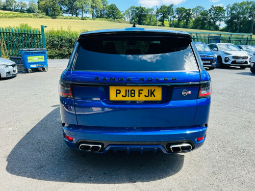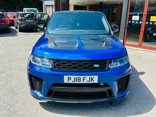 2018 Landrover RangeRover SVR 575 Euro 6- Has covered 41k with main dealer history just serviced- Mot December can be supplied with 12 months - By appointment please ring to make an appointment on this car - Extended Warranties Available - Part Exchange Welcome - Finance Available , in alloy wheels - 5 split spoke style 5091 with satin polish finish, active sports exhaust, auto-dimming exterior mirrors, body coloured carbon fibre bonnet, body coloured door handles, body coloured lower door claddings, body coloured side sills and bumpers, bonnet vent frame - gloss black, bonnet vent insert - narvik black, bonnet vents - gloss black, contrast painted roof - narvik black, door handle surrounds - narvik black, door mirrors - narvik black, front bumper corners - body coloured, front bumper frame - narvik black, front bumper mesh - gloss black, front bumper outer fin - body coloured, front grille frame - narvik black, front grille inner surround - gloss black, front grille mesh edging - gloss black, front tow eye cover - body colour, front and rear bumpers - body coloured, grille mesh - gloss black, grille surround - gloss black, heated windscreen with heated washer jets, illuminated aluminium front tread plates with range rover script, integrated exhaust finishers - stainless brushed, laminated front door - toughened rear door and quarter light glass, locking wheel nuts, mirror lower - gloss black, power fold - heated door mirrors with memory and approach lights, power windows - front and rear with remote power locking, range rover lettering - narvik black, rear bumper corners - narvik black, rear bumper exhaust surround - narvik black, rear bumper upper - narvik black, rear bumper with integrated quad exhaust finishers, rear tow eye cover - body coloured, rear tow eye cover surround - narvik black, red sv painted brake calipers, svr badge, svr engine cover, side a-d post finishers - window surrounds - gloss black, side fender vent fingers - narvik black, side fender vent frame - gloss black, switchable sports exhaust, tailgate finisher in narvik black, tyre repair system, 360 degree parking aid, atpc - all terrain progress control, adaptive cruise control with queue assist, adaptive dynamics, blind spot monitor, driver condition monitor, dynamic response, epas - speed proportional electric power assisted steering, electronic active differential with torque vectoring by braking, front and rear parking aid, lane departure warning, parking aid - rear view camera, svr sports air suspension, tft virtual instrument panel, tpms - tyre pressure monitoring system, terrain response 2 with dynamic program, traffic sign recognition and adaptive speed limiter, 60-40 folding rear seats, aluminium gearshift paddles, auto-dimming interior mirror, bright metal pedals, centre armrest with cubby box, configurable interior mood lighting, electrically adjustable steering column, extended leather upgrade, extended satin brushed aluminium trim finisher, footrest, front and rear cupholders, front and rear grab handles, heated front and rear seats, heated steering wheel, loadspace compartment light, loadspace cover, non smokers pack, powered gesture tailgate - boot lid, premium carpet mats, rain sensing windscreen wipers, svr leather steering wheel, svr performance seats, sunvisors with vanity mirrors, three-zone climate control, abs - anti lock braking system, autonomous emergency braking, cbc - cornering brake control, clear exit monitor, dsc - dynamic stability control, driver and passenger airbags, eba - emergency brake assist, ebd - electronic brake-force distribution, epb - electronic park brake, etc - electronic traction control, emergency braking, hdc - hill descent control, hsa - hill start assist, hazard warning lights under heavy braking, isofix child seat anchor points, intrusion sensor, keyless entry, low traction launch, power operated child locks, rsc - roll stability control, rear traffic monitor, secure tracker, volumetric and perimetric alarm, bluetooth phone connection and bluetooth audio streaming, connect pro pack, dab - digital audio broadcast, incontrol apps, incontrol protect, meridian surround sound system 825w, navigation pro, pro services and wi-fi hotspot, remote premium, touch pro duo - dual 10in screens, follow me home lighting, intelligent high beam, pixel led headlights with signature drl, rear lights - led