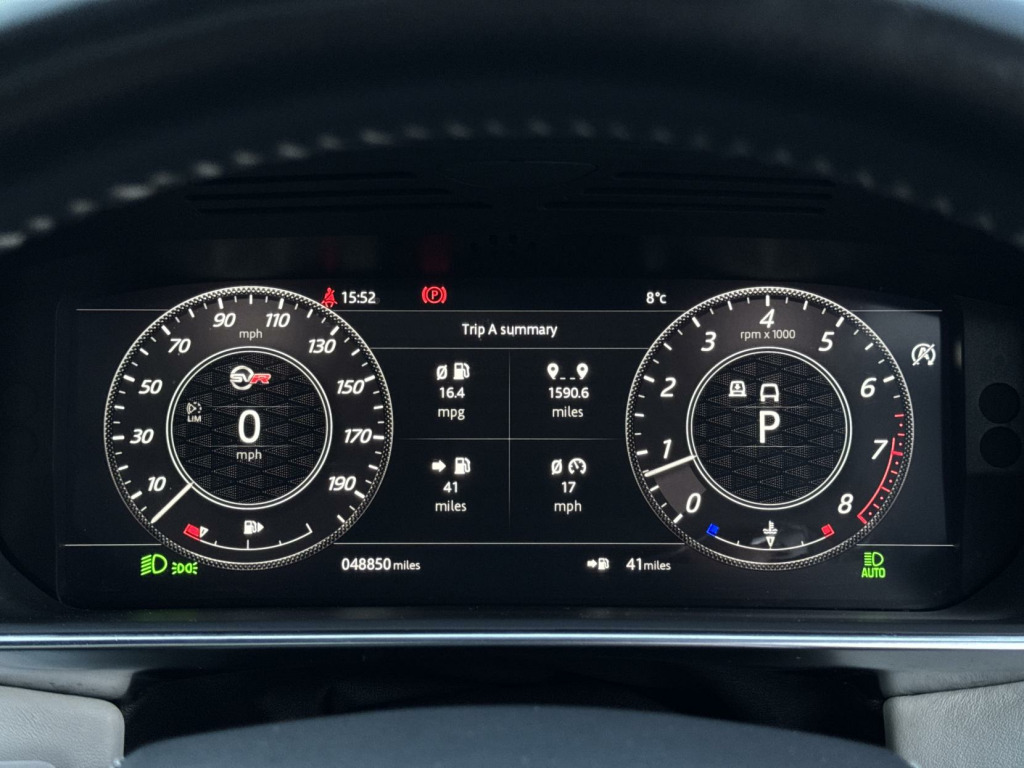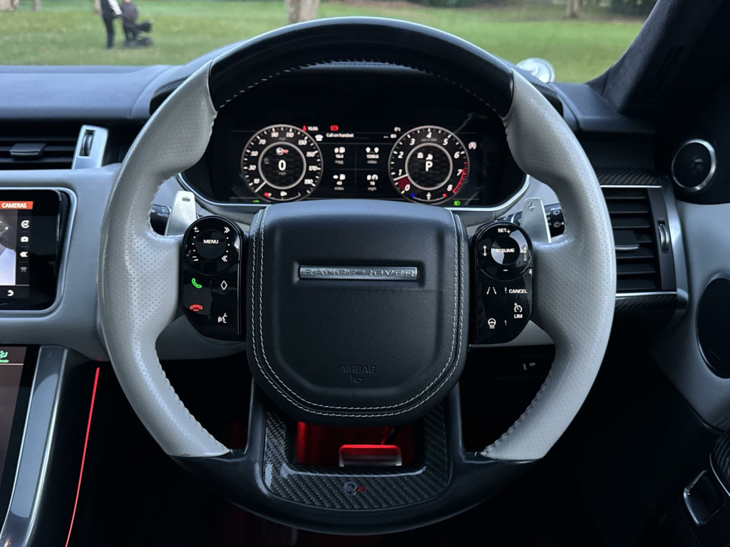 Other notable options include Four-Zone Climate Control, Cabin Air Ionisation, a front refrigerator compartment, domestic plug socket and the SVR’s standard performance additions such as the switchable sports exhaust, active exhaust control, lightweight exhaust system, adaptive dynamics, Dynamic Response, electronic active differential with torque vectoring and Terrain Response 2. The vehicle sits in Yulong White with the full carbon exterior treatment and is in superb condition. It has also been ceramic coated.