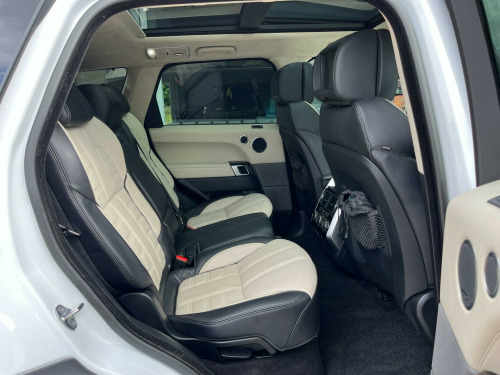 ** NATIONWIDE DELIVERY ** 8 SERVICES ** FACTORY Rr MEDIA ** OPENING PANORAMIC GLASS SUNROOF ** 1700w MERIDIAN HiFi ** BLIND SPOT MONITORING ** CLIMATE SEATS ** SOFT CLOSE DOORS ** DAB RADIO ** LED SIGNATURE LIGHTS ** 21'' ALLOYS ** BLUETOOTH AUDIO / PHONE ** PRIVACY GLASS ** Presented in beautiful Fuji White metallic with contrasting two tone Ivory & Black perforated leather interior. Leather extended to dash and door cards. Finished with Charcoal suede headliner. A beautiful example benefitting from a full service history (7 Land Rover & 1 Independant). Specification includes upgrade full colour touch screen infotainment system with Carplay integration, rear view camera, DAB radio, Bluetooth audio streaming, i-POD / AUX / USB interface, upgrade 1700w Meridian hifi / speaker system, Bluetooth telephone, factory fitted rear media / headrest DVDs, front & rear parking sensors, panoramic glass sunroof (electric slide & tilt opening) with retractable sunshade, electrically adjustable & massaging driver & front passenger seats with memory function, heated / cooled (climate) front seats, heated rear seats, front centre armrest with cool box, four zone climate control (facelift controls), electrically adjustable & heated multi function steering wheel with paddle shift gear change, adaptive cruise control, blind spot monitoring, auto bi xenon headlamps with ''signature'' LED running lights, rain sensitive wipers, electrically adjustable & folding door mirrors, auto dimming rear view mirror, electric windows, power tailgate (open & close), heated quick clear windscreen, powered 3rd row seats (7 seats), keyless entry with push button start, tailored carpet mats, illuminated door entry scuff plates, soft close doors, privacy glass, contrast Santorini Black roof, full ''Dynamic'' body styling, Red Brembo brake callipers, finished with upgrade gloss Black 21'' alloy wheels (unmarked). Supplied with original Landrover owners wallet, owners / operators manuals & 2 keys. way drivers / 18 way passenger front seats, 21in 5 split spoke alloy wheels - style 16, 3 zone climate control, 3.5mm stereo auxiliary input socket, 4 way lumbar, 825w meridian surround sound system, 8in touch screen, abs - anti lock braking system, acoustic laminated windscreen, adaptive cruise control with queue assist with intelligent emergency braking, adaptive dynamics, adjustable front head restraints, adjustable speed limiter device, air filtration, airbags - driver and passenger side, airbags - full size driver, airbags - full size passenger, airbags - full length curtain, alarm system - volumetric, alston headlining - cirrus, armrest - front seat, audio - cd radio, audio system - dab, auto lock on driveaway, auto locking and crash unlock system, auto-dimming interior mirror, automatic headlights, auxiliary power sockets 12v - front, bluetooth audio streaming, bluetooth phone connection, body colour door mirrors, brake pre-fill, cbc - cornering brake control, carpet mats - luxury with contrast edging, centre high mounted stop light, climate front seats with heated rear seats, customer configurable interior mood lighting, customer configurable autolock - doors lock on driveaway, dsc - dynamic stability control, dark engine turned metal aluminium trim finisher, daytime running lights, door mirrors - heated - adjustable - powerfold with approach lights and memory, dynamic programme, dynamic response, eba - emergency brake assist, ebd - electronic brake-force distribution, epas - electronic power assisted steering, etc - electronic traction control, electric parking brake, electric windows - front and rear, electrical towing preparation, electronic air suspension - variable ride height, event data recorder, exterior mirrors - auto dipping in reverse gear, follow me home lighting, front door mini stowage pocket with rubber mat, front fog lights, front and rear cupholders, front and rear grab handles, front centre console - cooler compartment, hdc - hill descent control, hard disk navigation system, hazard warning lights under heavy braking, headlights - power wash, heated front seats, heated rear window, heated wiper park position, high beam assist, high performance red brake calipers, isofix child seat anchor points, illuminated aluminium tread plates with range rover lettering, illumination - load compartment light, keyless entry, led rear lights, laminated front door glass - toughened rear door glass and quarter light glass, leather steering wheel, left to right hand drive easy config headlights, loadspace mounting provisions, locking wheel nuts, map reading lights - front, mono colour courtesy lighting, mounting provisions - for dog guard, non smokers pack, paddleshift, parking aid - front, parking aid - rear, parking aid - rear view camera, partial tft / lcd instrument cluster, power operated child locks, push button start, rsc - roll stability control, rain sensing windscreen wipers, reactive grounding response, rear centre console armrest, roller blind luggage cover, roof - body coloured, roof rack mounting provisions-blanking plugs, seat map pockets, seat belts - front pre-tensioners with load limiters, seats - 60/40 split, secure glove box stowage, side repeater indicators in mirror, sliding panoramic roof, spare wheel - temporary reduced section, stainless steel sports pedals, stealthmode ambient lighting, steering wheel - heated, steering wheel mounted audio controls, steering column - electric adjustment for height and reach with entry and exit tilt away, sun visors - illuminated vanity mirrors, tpms - tyre pressure monitoring system, tsa - trailer stability assist, tailgate - power open/close, terrain response 2 auto, torque vectoring, trip computer, twin speed transfer box - high and low range, twin tailpipes, usb connectivity, user selectable screen savers, voice control - say what you see, windscreen - heated, xenon headlamps with led signature, soft close doors, contrast painted roof - santorini black, glass - privac