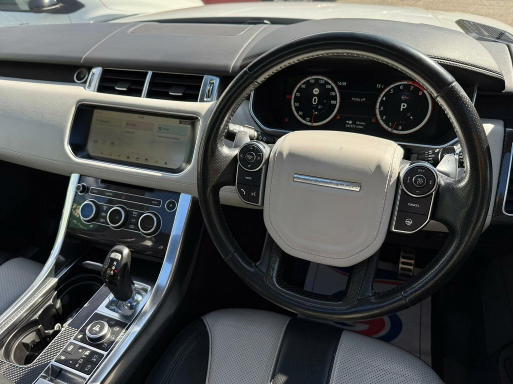 We are pleased to offer you this stunning and we mean stunning 2017 Range Rover Sport SVR finished in Polaris White. Covered just 47,000 miles from new, this SVR is truly stunning throughout, and comes with a Full Service History, 2 Keys. High specification with over £11,000 of optional extras include Heated Seats, Adaptive Cruise Control, Meridian Signature Reference 1700w, Carbon Fibre Trim, Head Up Display, Remote Park Heat, Surround Cameras, Soft Close Doors and much more! This SVR is truly immaculate throughout and you will not find a better example for under £35,000, we guarantee it! This SVR benefits from having a GHOST immobiliser fitted!