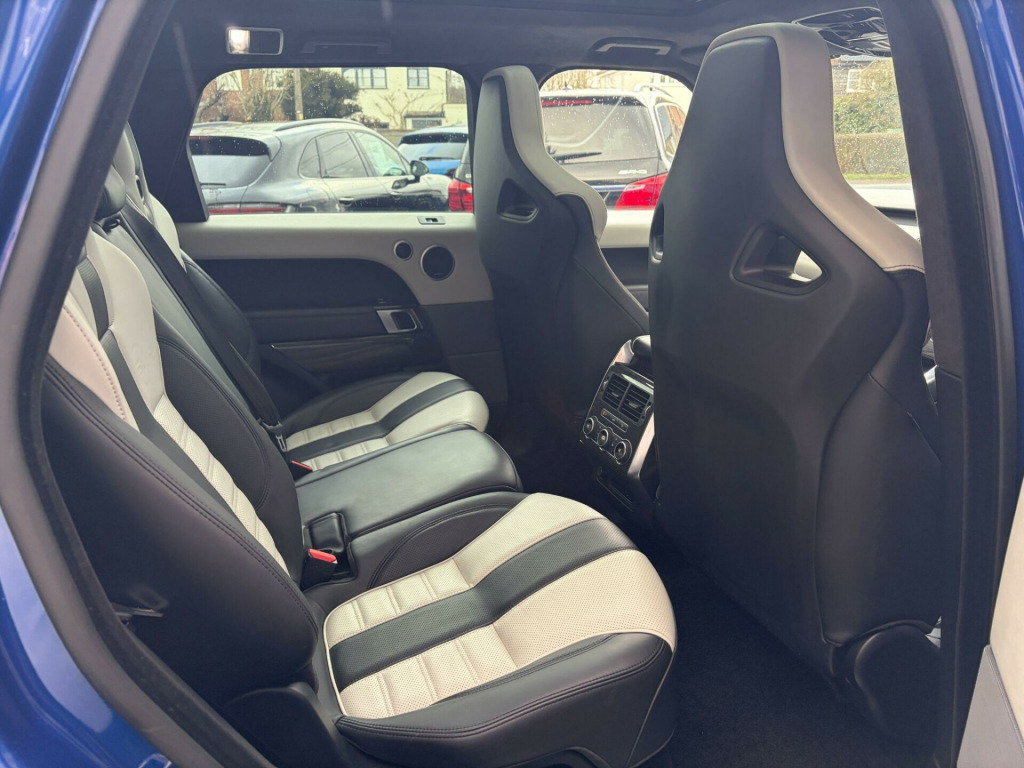 ** NATIONWIDE DELIVERY ** SLIDING PANORAMIC GLASS SUNROOF ** SPORTS EXHAUST ** APPLE CARPLAY ** BLIND SPOT MONITOR ** MERIDIAN HiFi ** REVERSE CAMERA ** DAB RADIO ** LED SIGNATURE LIGHTS ** 22'' ALLOYS ** BLUETOOTH AUDIO / PHONE ** PRIVACY GLASS ** 4 ZONE CLIMATE ** Presented in stunning Estoril (Tanzanite) Blue metallic with contrasting two tone Cirrus & Ebony perforated ''SVR'' leather interior trim. Leather extended to dash and door cards. Finished with Charcoal suede headliner & Carbon fibre inserts. A beautiful example in outstanding condition. Benefitting from a Land Rover main dealer service history (4 services). Service to be completed prior to completion of sale. Specification includes full colour touch screen infotainment system with satellite navigation, rear view camera, AppleCarPlay / Android Auto, DAB radio, Bluetooth audio streaming, i-POD / AUX / USB interface, upgrade Meridian hifi / speaker system, Bluetooth telephone, front & rear parking sensors, panoramic glass sunroof (slide & tilt opening) with electrically retractable sunshade, electrically adjustable driver & front passenger seats with memory function, heated seats front & rear, front centre armrest with storage facility, four zone climate control, electrically adjustable & heated multi function steering wheel with paddle shift gear change, adaptive cruise control, lane keep assist, auto bi xenon headlamps with ''signature'' LED running lights, rain sensitive wipers, electrically adjustable & folding door mirrors with blind spot monitoring, auto dimming rear view mirror, electric windows, power tailgate (open & close), switchable ''sports'' exhaust, heated quick clear windscreen, keyless entry with push button start, tailored mats, illuminated door entry scuff plates, privacy glass, full ''SVR'' body styling / suspension & exhaust, Black pack exterior styling, Blue Brembo brake callipers, finished with 22'' gloss Black alloy wheels (unmarked). Supplied with 2 keys. Buy with confidence from a long established dealer with fantastic reputation, feedback & reviews. -way driver - 16-way passenger style 9 svr sports powered seats with memory, 20 inch blue brembo branded brake calipers - front only - non-branded rear, 21in alloy wheels - 5 split spoke - style 517, 60-40 folding rear seats, 8in high resolution touch screen, abs - anti lock braking system, asl - active speed limiter, active sports exhaust, adaptive cruise control incorporating queue assist with emergency braking and active seat belts, adaptive dynamics, audio system - dab, auto-dimming interior mirror, automatic headlights with high beam assist, auxillary device connectivity - full integrated streaming, auxillary power sockets - front - second row and load space - 12 volt, bluetooth audio streaming, bluetooth phone connection, bright quad tailpipes, cbc - cornering brake control, carry hook in load space, centre armrest with cubby box, climate control memory pre-set to drivers last temperature, customer configurable interior mood lighting, dsc - dynamic stability control, daytime running lights, door mirrors - power adjustable-heated-power fold with approach lights, driver and passenger airbags, driver and passenger sunvisor with illuminated vanity mirror, dynamic exterior trim differentiation, dynamic response, eba - emergency brake assist, ebd - electronic brake-force distribution, epas - speed proportional electric power assisted steering, epb - electronic park brake, etc - electronic traction control, electrical towing preparation, electronic cross linked air suspension with automatic load levelling, fcas - four corner air suspension, follow me home lighting, footrest, front door mini stowage pocket with rubber mat, front height-adjustable seat belts, front and rear cupholders, front and rear grab handles, front and rear park distance sensors with visual display, front and rear recovery hooks, gesture tailgate, gloss black door mirror caps, hdc - hill descent control, hdd premium navigation, hazard warning lights under heavy braking, heated front and rear seats, heated oxford leather steering wheel with multi-functional controls, heated windscreen with heated washer jets, isofix child seat anchor points, illuminated aluminium tread plates with range rover lettering, incontrol apps, incontrol connect pack, incontrol protect (3 year subscription from new), incontrol remote premium, incontrol secure (3 year subscription from new), incontrol wi-fi, interior trim differential - tl4 svr - 4colour themes, keyless entry, laminated hydrophobic front door - toughened rear door and quarter light glass, loadspace compartment light, loadspace mounting provisions, locking wheel nuts, mp3 compatible audio hard disk server, map reading lights - front, meridian surround sound system 825w, metal roof, noble plated paddle shift, non smokers pack, on-off road pack, painted side sills and bumpers, park ventilation, parking aid - rear view camera, power adjustable steering column, power operated child locks, power windows - front and rear with remote power locking, premium front and rear carpet mats with edging, rsc - roll stability control, rain sensing windscreen wipers, range rover smart key controls - remote lock-unlock-double lock-lights on tailgate open, rear centre armrest, rear lights - led, rear seat belts, rear seat fixed cushion, remote power window locking, roller loadspace cover, roof - body coloured, svr badge, seat belt reminder, seat map pockets, secure glove box stowage, single blade sunvisor, stainless steel sports pedals, tft virtual instrument panel, tpms - tyre pressure monitoring system, terrain response 2 with dynamic program, three point seat belt - all seats, three-zone climate control, torque vectoring, trailer stability control, trim finisher - dark engine turned aluminium, twin speed transfer box - high-low range, two usb sockets - front and second row, tyre repair system, user selectable screen savers, volumetric and perimetric alarm, xenon hea