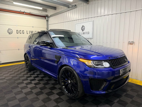 Land Rover Range Rover Sport 5.0 V8 SVR SUV 5dr Petrol Auto 4WD Euro 6 (s/s) (550 PS) (2017) £34,495 | 45,500 miles | Automatic | Petrol | 4WD | Euro 6 Available Now at DCG Limited – AA Approved Dealer in Reading A breathtaking example of the iconic Range Rover Sport SVR, finished in the ultra?rare and highly desirable Tanzanite Blue. Powered by the legendary 5.0 V8 Supercharged engine (550 PS), this SVR delivers an unmistakable soundtrack—enhanced further by a modified exhaust system that truly lets you hear the V8 as it was meant to be heard. With ULEZ compliance, 6 services, and a major service just completed, this SVR is mechanically exceptional and cosmetically stunning. Finished off with a full 4?wheel gloss black refurbishment, it's ready for its next custodian. Vehicle Highlights: 5.0L Supercharged V8 (550 PS) – Explosive performance and unmistakable sound Automatic Transmission – Smooth, responsive, and refined 4WD System – Confident handling in all conditions Euro 6 Emissions Standard – ULEZ compliant Finished in Tanzanite Blue – Rare, deep, premium colour Modified Exhaust System – Enhanced V8 note SVR Styling – Aggressive bodywork, sports seats, and premium detailing Touchscreen Infotainment – Bluetooth, DAB, USB, Sat Nav Reverse Camera & Parking Sensors Heated Seats & Dual?Zone Climate 22in Alloy Wheels - 10 Split Spoke - Sty, 360 Park Distance Control, 60-40 Folding Rear Seats, ABS - Anti Lock Braking System, Active Sports Exhaust, Adaptive Cruise Control with Queue Assis, Adaptive Dynamics, Auto-Dimming Interior Mirror, Automatic High Beam Assist, Autonomous Emergency Braking - City-Urba, Blind Spot Monitor with Reverse Traffic , Blue Painted Brake Calipers, Bluetooth Phone Connection and Bluetooth, Body Coloured Door Handles, Body Coloured Roof, Body Coloured Side Sills and Bumpers, Bonnet Vents - Gloss Black, Bright Quad Tailpipes, Bright Sport Pedals, CBC - Cornering Brake Control, Centre Armrest with Cubby Box, Configurable Interior Mood Lighting, DAB - Digital Audio