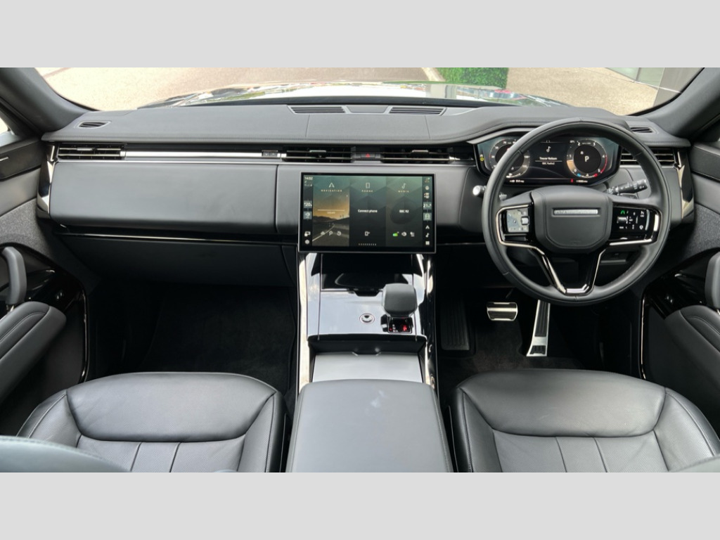 Land Rover Range Rover Sport 3.0 D300 Dynamic SE 5dr Auto 13.1" Touchscreen, 3D 360 degree surround camera with wade sensing, Adaptive cruise control with steering assist, Android Auto, Apple car play, Blind spot assist, Bluetooth connectivity streaming, Driver condition response, Eco mode, Front and rear parking aid, Interactive Driver display instrument cluster, Lane departure warning system, Lane keep assist, Push button start, Rear collision monitor, Rear traffic monitor, Remote, Traffic sign recognition with adaptive speed limiter, Trip computer, Wireless device charging, 8 speed automatic transmission, Adaptive dynamics, All wheel drive system, Automatic access height, Terrain Response 2, DAB Radio (Digital Audio Broadcasting), Incontrol protect - SOS emergency call with automatic collision detection, optimised assistance call and Incontrol remote app essential, Pivi pro connected, USB/aux input socket, Adaptive brake lights, Automatic headlight levelling, Automatic headlights, Centre high mounted stop light, Electric heated/power fold memory door mirrors with approach lights and auto dimming driver side, Electric windows with one touch open/close and anti trap, Flush deployable exterior door handles, Follow me home lighting, Front and rear recovery eyes, Headlight power wash, Heated rear window, Heated washer jets, Heated windscreen, Illuminated aluminium treadplates with Range Rover script, LED tail lights, Metal load space scuff plates, No badges, Rain sensing windscreen wipers, Rear animated directional indicators, Rear fog lights, Rear side wing doors, Rear wash/wipe, Remote window closing, Side repeater indicators in mirror, Trailer stability assist, Winter wiper park position, 3 seat bench in 2nd row, 60:40 seats with power recline and loadthrough, Air quality sensor, Auto air recirculation, Bright metal foot pedals, Centre console with armrest, Customer configurable single point entry, Driver's footrest, Easy boot loading, Ebony console door armrests and seatbelts, Electric adjustable steering column, Front and rear cupholders, Front door storage space, Front head restraints, Front map lights, Front seat back map pockets, Front stowage pocket, Front/rear passenger grab handles, Gearshift paddles, Heated steering wheel, Isofix child seat preparation, Loadspace cover, Loadspace Hook, Loadspace light, Loadspace mounting provisions, Lockable glovebox, Luggage tie-downs in loadspace, Multifunction steering wheel, Pollen filter, Power socket, Rear centre armrest, Rear head restraints, Rear ISOFIX, Single front passenger seat, Three 12V accessory power outlets, Upper secondary glovebox, Online pack with data plan - Range Rover Sport, 3 point seatbelts on all seats, Anti-lock braking system (ABS), Brake pre-fill technology, Configurable autolock, Cornering brake control (CBC), DSC - Dynamic Stability Control, EBD - Electronic brakeforce distribution, Electric parking brake, Electronic traction control, Emergency braking, Front seatbelt pretensioners, Front side airbags, Height adjustable front seatbelts, Hill descent control, Hill launch assist, Low traction launch, Occupant protection assist, Passenger seat occupant detector with front airbags, Power operated child locks, Roll stability control, Seatbelt warning, TPMS (Tyre pressure monitoring system), Immobiliser, Intrusion sensor, Keyless entry, Locking wheel nuts, Perimetric and volumetric anti theft alarm, Remote locking, Moonlight noble chrome interior finishers