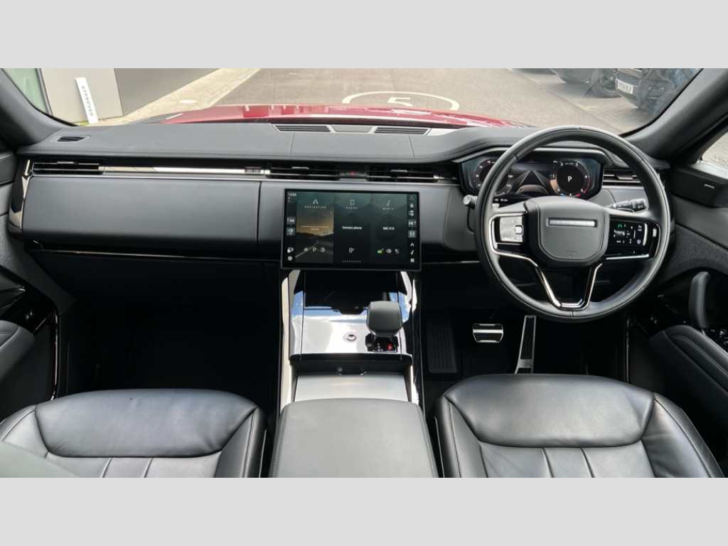 Land Rover Range Rover Sport 3.0 D300 Dynamic SE 5dr Auto 13.1" Touchscreen, 3D 360 degree surround camera with wade sensing, Adaptive cruise control with steering assist, Android Auto, Apple car play, Blind spot assist, Bluetooth connectivity streaming, Driver condition response, Eco mode, Front and rear parking aid, Interactive Driver display instrument cluster, Lane departure warning system, Lane keep assist, Push button start, Rear collision monitor, Rear traffic monitor, Remote, Traffic sign recognition with adaptive speed limiter, Trip computer, Wireless device charging, 8 speed automatic transmission, Adaptive dynamics, All wheel drive system, Automatic access height, Terrain Response 2, DAB Radio (Digital Audio Broadcasting), Incontrol protect - SOS emergency call with automatic collision detection, optimised assistance call and Incontrol remote app essential, Pivi pro connected, USB/aux input socket, Adaptive brake lights, Automatic headlight levelling, Automatic headlights, Centre high mounted stop light, Electric heated/power fold memory door mirrors with approach lights and auto dimming driver side, Electric windows with one touch open/close and anti trap, Flush deployable exterior door handles, Follow me home lighting, Front and rear recovery eyes, Headlight power wash, Heated rear window, Heated washer jets, Heated windscreen, Illuminated aluminium treadplates with Range Rover script, LED tail lights, Metal load space scuff plates, No badges, Rain sensing windscreen wipers, Rear animated directional indicators, Rear fog lights, Rear side wing doors, Rear wash/wipe, Remote window closing, Side repeater indicators in mirror, Trailer stability assist, Winter wiper park position, 3 seat bench in 2nd row, 60:40 seats with power recline and loadthrough, Air quality sensor, Auto air recirculation, Bright metal foot pedals, Centre console with armrest, Customer configurable single point entry, Driver's footrest, Easy boot loading, Ebony console door armrests and seatbelts, Electric adjustable steering column, Front and rear cupholders, Front door storage space, Front head restraints, Front map lights, Front seat back map pockets, Front stowage pocket, Front/rear passenger grab handles, Gearshift paddles, Heated steering wheel, Isofix child seat preparation, Loadspace cover, Loadspace Hook, Loadspace light, Loadspace mounting provisions, Lockable glovebox, Luggage tie-downs in loadspace, Multifunction steering wheel, Pollen filter, Power socket, Rear centre armrest, Rear head restraints, Rear ISOFIX, Single front passenger seat, Three 12V accessory power outlets, Upper secondary glovebox, Online pack with data plan - Range Rover Sport, 3 point seatbelts on all seats, Anti-lock braking system (ABS), Brake pre-fill technology, Configurable autolock, Cornering brake control (CBC), DSC - Dynamic Stability Control, EBD - Electronic brakeforce distribution, Electric parking brake, Electronic traction control, Emergency braking, Front seatbelt pretensioners, Front side airbags, Height adjustable front seatbelts, Hill descent control, Hill launch assist, Low traction launch, Occupant protection assist, Passenger seat occupant detector with front airbags, Power operated child locks, Roll stability control, Seatbelt warning, TPMS (Tyre pressure monitoring system), Immobiliser, Intrusion sensor, Keyless entry, Locking wheel nuts, Perimetric and volumetric anti theft alarm, Remote locking, Moonlight noble chrome interior finishers