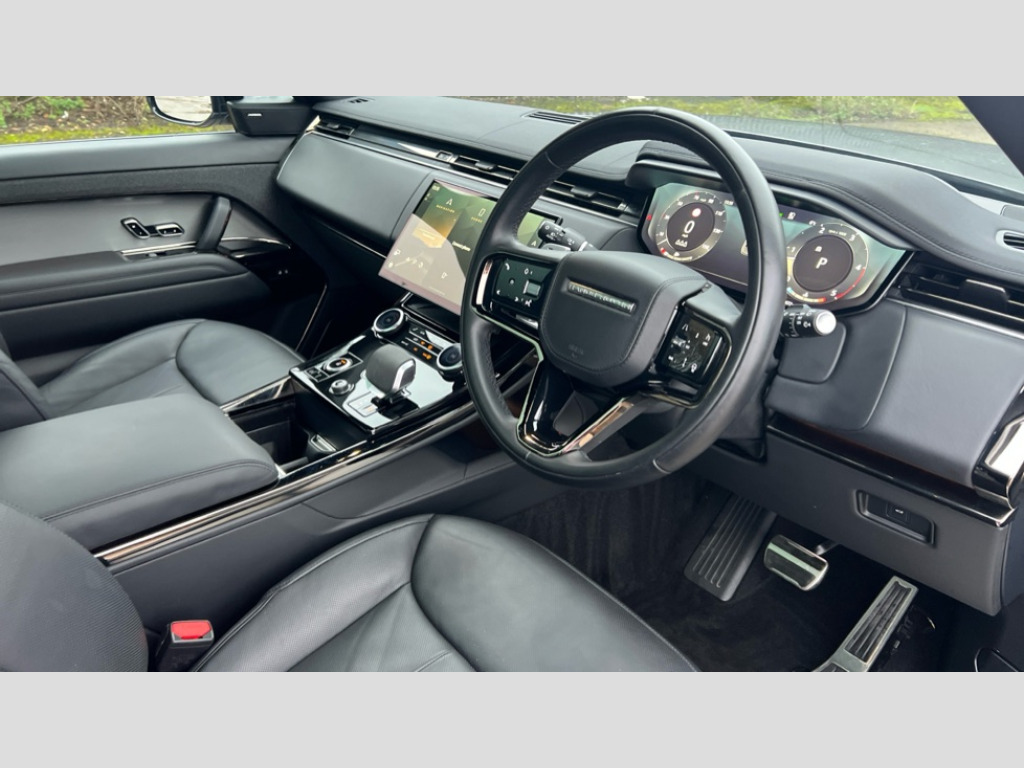 Land Rover Range Rover Sport 3.0 D300 Dynamic SE 5dr Auto 13.1" Touchscreen, 3D 360 degree surround camera with wade sensing, Adaptive cruise control with steering assist, Android Auto, Apple car play, Blind spot assist, Bluetooth connectivity streaming, Driver condition response, Eco mode, Electric power assisted steering (EPAS), Interactive Driver display instrument cluster, Lane departure warning system, Lane keep assist, Push button start, Rear collision monitor, Rear traffic monitor, Remote, Traffic sign recognition with adaptive speed limiter, Trip computer, Wireless device charging, 8 speed automatic transmission, Adaptive dynamics, All wheel drive system, Automatic access height, Dynamic air suspension, Terrain Response 2, DAB Radio (Digital Audio Broadcasting), Incontrol protect - SOS emergency call with automatic collision detection, optimised assistance call and Incontrol remote app essential, Pivi pro connected, USB/aux input socket, Adaptive brake lights, Automatic headlight levelling, Automatic headlights, Centre high mounted stop light, Electric heated/power fold memory door mirrors with approach lights and auto dimming driver side, Electric windows with one touch open/close and anti trap, Flush deployable exterior door handles, Follow me home lighting, Front and rear recovery eyes, Headlight power wash, Heated rear window, Heated washer jets, Heated windscreen, LED tail lights, Metal load space scuff plates, No badges, Rain sensing windscreen wipers, Rear animated directional indicators, Rear fog lights, Rear side wing doors, Rear wash/wipe, Remote window closing, Side repeater indicators in mirror, Trailer stability assist, Winter wiper park position, 3 seat bench in 2nd row, 60:40 seats with power recline and loadthrough, Air quality sensor, Auto air recirculation, Bright metal foot pedals, Centre console with armrest, Customer configurable single point entry, Driver's footrest, Easy boot loading, Ebony console door armrests and seatbelts, Electric adjustable steering column, Extended leather upgrade, Front and rear cupholders, Front door storage space, Front head restraints, Front map lights, Front seat back map pockets, Front stowage pocket, Front/rear passenger grab handles, Gearshift paddles, Heated steering wheel, Isofix child seat preparation, Loadspace cover, Loadspace Hook, Loadspace light, Loadspace mounting provisions, Lockable glovebox, Luggage tie-downs in loadspace, Multifunction steering wheel, Pollen filter, Power socket, Rear centre armrest, Rear head restraints, Rear ISOFIX, Single front passenger seat, Three 12V accessory power outlets, Upper secondary glovebox, Online pack with data plan - Range Rover Sport, 3 point seatbelts on all seats, Anti-lock braking system (ABS), Brake pre-fill technology, Configurable autolock, Cornering brake control (CBC), DSC - Dynamic Stability Control, EBD - Electronic brakeforce distribution, Electric parking brake, Electronic traction control, Emergency braking, Front seatbelt pretensioners, Front side airbags, Height adjustable front seatbelts, Hill descent control, Hill launch assist, Low traction launch, Occupant protection assist, Passenger seat occupant detector with front airbags, Power operated child locks, Roll stability control, Seatbelt warning, TPMS (Tyre pressure monitoring system), Immobiliser, Intrusion sensor, Keyless entry, Locking wheel nuts, Perimetric and volumetric anti theft alarm, Remote locking, Moonlight noble chrome interior finishers
