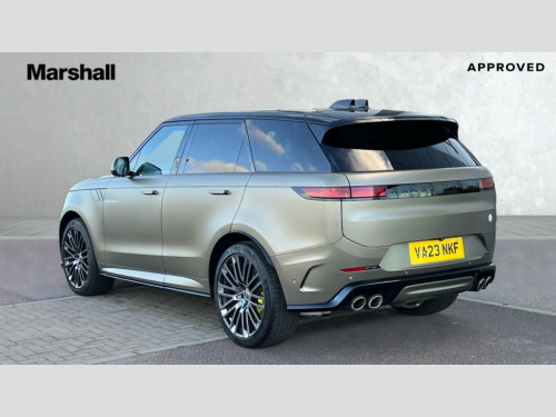 Land Rover Range Rover Sport 4.4 P635 V8 SV Edition One 5dr Auto[Carbon Bronze] 13.1" Touchscreen, 3D 360 degree surround camera with wade sensing, Adaptive cruise control with steering assist, All wheel steering, Android Auto, Apple car play, Blind spot assist, Bluetooth connectivity streaming, Configurable programs, Driver condition response, Eco mode, Electric power assisted steering (EPAS), Front and rear parking aid, Head up Display, Interactive Driver display instrument cluster, Lane departure warning system, Lane keep assist, Park assist, Powered gesture tailgate, Push button start, Rear collision monitor, Rear traffic monitor, Remote, Traffic sign recognition with adaptive speed limiter, Trip computer, Wireless device charging with phone signal booster, 6D Dynamics, 8 speed automatic transmission, Adaptive dynamics, Adaptive off-road cruise control, All wheel drive system, Automatic access height, Electronic active differential with brake torque vectoring, Single speed transfer box, Terrain Response 2, DAB Radio (Digital Audio Broadcasting), Incontrol protect - SOS emergency call with automatic collision detection, optimised assistance call and Incontrol remote app essential, Meridian Signature Sound system, Pivi pro connected, USB/aux input socket, Adaptive brake lights, Automatic headlight levelling, Automatic headlights, Centre high mounted stop light, ClearSight interior rear view mirror, Digital LED headlights with signature DRL and image projection, Electric heated/power fold memory door mirrors with approach lights and auto dimming driver side, Electric windows with one touch open/close and anti trap, Flush deployable exterior door handles, Follow me home lighting, Front and rear recovery eyes, Headlight power wash, Heated rear window, Heated washer jets, Heated windscreen, Illuminated metal treadplates with SV script, Integrated twin tailpipes, Laminated front and rear side glass, LED tail lights, Metal load space scuff plates, Privacy glass, Rain sensing windscreen wipers, Rear animated directional indicators, Rear fog lights, Rear side wing doors, Rear wash/wipe, Remote window closing, Side repeater indicators in mirror, SV exterior badge, Trailer stability assist, Winter wiper park position, 16 way electric heated and cooled performance front seats with massage and heated and ventilated power recline rear seats, 3 seat bench in 2nd row, 60:40 seats with power recline and loadthrough, Air quality sensor, Auto air recirculation, Body and soul seat, Bright metal foot pedals, Centre console with armrest, Customer configurable single point entry, Driver's footrest, Easy boot loading, Ebony console door armrests and seatbelts, Edge illuminated paddle shifters, Electric adjustable steering column, Front and rear cupholders, Front door storage space, Front head restraints, Front map lights, Front seat back map pockets, Front stowage pocket, Front/rear passenger grab handles, Gearshift paddles, Heated steering wheel, Isofix child seat preparation, Loadspace cover, Loadspace Hook, Loadspace light, Loadspace mounting provisions, Lockable glovebox, Luggage tie-downs in loadspace, Multifunction steering wheel, Pollen filter, Power socket, Premium cabin lighting, Rear centre armrest, Rear head restraints, Rear ISOFIX, Single front passenger seat, Soft close doors, SV Carbon fibre seatback, SV carpet mats, Three 12V accessory power outlets, Upper secondary glovebox, Online pack with data plan - Range Rover Sport, SV Twill Carbon Satin Fibre Exterior pack - Range Rover Sport, 3 point seatbelts on all seats, Anti-lock braking system (ABS), Brake pre-fill technology, Configurable autolock, Cornering brake control (CBC), DSC - Dynamic Stability Control, EBD - Electronic brakeforce distribution, Electric parking brake, Electronic traction control, Emergency braking, Front seatbelt pretensioners, Front side airbags, Height adjustable front seatbelts, Hill descent control, Hill launch assist, Illuminated seat belt buckles, Low traction launch, Occupant protection assist, Passenger seat occupant detector with front airbags, Power operated child locks, Roll stability control, Seatbelt warning, TPMS (Tyre pressure monitoring system), Immobiliser, Intrusion sensor, Keyless entry, Locking wheel nuts, Perimetric and volumetric anti theft alarm, Remote locking, Satin black ceramic controls, SV Carbon fibre finisher