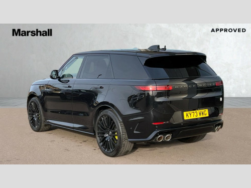 Land Rover Range Rover Sport 4.4 P635 V8 SV Edition One 5dr Auto [Gloss] 13.1" Touchscreen, 3D 360 degree surround camera with wade sensing, Adaptive cruise control with steering assist, All wheel steering, Android Auto, Apple car play, Blind spot assist, Bluetooth connectivity streaming, Configurable programs, Driver condition response, Eco mode, Electric power assisted steering (EPAS), Front and rear parking aid, Head up Display, Interactive Driver display instrument cluster, Lane departure warning system, Lane keep assist, Park assist, Powered gesture tailgate, Push button start, Rear collision monitor, Rear traffic monitor, Remote, Traffic sign recognition with adaptive speed limiter, Trip computer, Wireless device charging with phone signal booster, 6D Dynamics, 8 speed automatic transmission, Adaptive dynamics, Adaptive off-road cruise control, All wheel drive system, Automatic access height, Electronic active differential with brake torque vectoring, Single speed transfer box, Terrain Response 2, DAB Radio (Digital Audio Broadcasting), Incontrol protect - SOS emergency call with automatic collision detection, optimised assistance call and Incontrol remote app essential, Meridian Signature Sound system, Pivi pro connected, USB/aux input socket, Adaptive brake lights, Automatic headlight levelling, Automatic headlights, Centre high mounted stop light, ClearSight interior rear view mirror, Digital LED headlights with signature DRL and image projection, Electric heated/power fold memory door mirrors with approach lights and auto dimming driver side, Electric windows with one touch open/close and anti trap, Flush deployable exterior door handles, Follow me home lighting, Front and rear recovery eyes, Headlight power wash, Heated rear window, Heated washer jets, Heated windscreen, Illuminated metal treadplates with SV script, Integrated twin tailpipes, Laminated front and rear side glass, LED tail lights, Metal load space scuff plates, Privacy glass, Rain sensing windscreen wipers, Rear animated directional indicators, Rear fog lights, Rear side wing doors, Rear wash/wipe, Remote window closing, Side repeater indicators in mirror, SV bespoke ultra metallic gloss finish paint, SV exterior badge, Trailer stability assist, Winter wiper park position, 16 way electric heated and cooled performance front seats with massage and heated and ventilated power recline rear seats, 3 seat bench in 2nd row, 60:40 seats with power recline and loadthrough, Air quality sensor, Auto air recirculation, Body and soul seat, Bright metal foot pedals, Centre console with armrest, Customer configurable single point entry, Driver's footrest, Easy boot loading, Ebony console door armrests and seatbelts, Edge illuminated paddle shifters, Electric adjustable steering column, Front and rear cupholders, Front door storage space, Front head restraints, Front map lights, Front seat back map pockets, Front stowage pocket, Front/rear passenger grab handles, Gearshift paddles, Heated steering wheel, Isofix child seat preparation, Loadspace cover, Loadspace Hook, Loadspace light, Loadspace mounting provisions, Lockable glovebox, Luggage tie-downs in loadspace, Multifunction steering wheel, Pollen filter, Power socket, Premium cabin lighting, Rear centre armrest, Rear head restraints, Rear ISOFIX, Single front passenger seat, Soft close doors, SV carpet mats, Three 12V accessory power outlets, Upper secondary glovebox, Online pack with data plan - Range Rover Sport, SV Twill Carbon Gloss Fibre Exterior pack - Range Rover Sport, 3 point seatbelts on all seats, Anti-lock braking system (ABS), Brake pre-fill technology, Configurable autolock, Cornering brake control (CBC), DSC - Dynamic Stability Control, EBD - Electronic brakeforce distribution, Electric parking brake, Electronic traction control, Emergency braking, Front seatbelt pretensioners, Front side airbags, Height adjustable front seatbelts, Hill descent control, Hill launch assist, Illuminated seat belt buckles, Low traction launch, Occupant protection assist, Passenger seat occupant detector with front airbags, Power operated child locks, Roll stability control, Seatbelt warning, TPMS (Tyre pressure monitoring system), Immobiliser, Intrusion sensor, Keyless entry, Locking wheel nuts, Perimetric and volumetric anti theft alarm, Remote locking, Satin black ceramic controls, SV Carbon fibre finisher