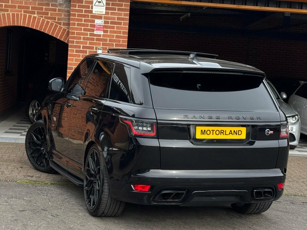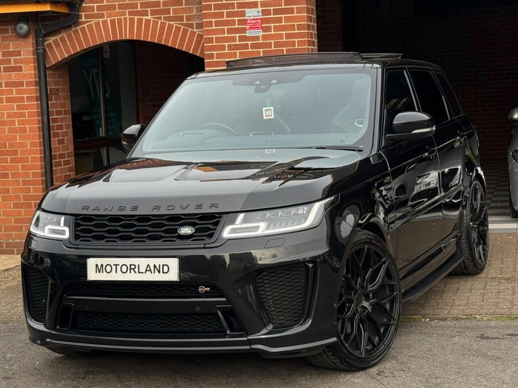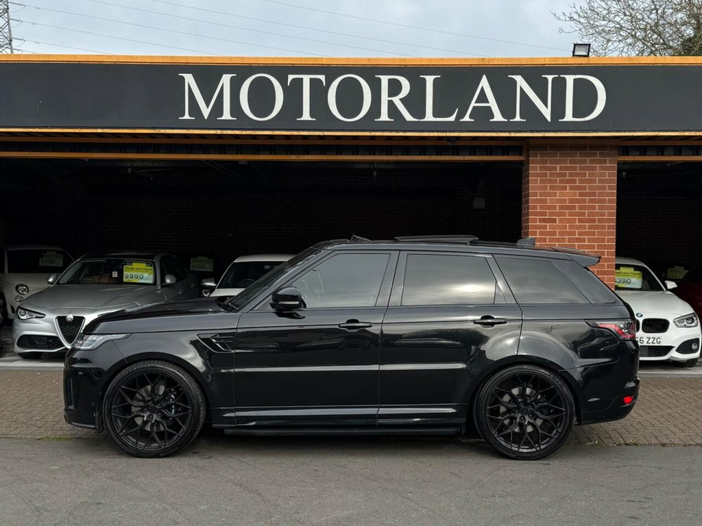 Santorini Black Metallic/SV Ultimate Black, 105000 Miles With Full Landrover Service History!! Only 2 Former Owners From New!! GHOST EMOBILIZER INSTALLED!!! MASSIVE SPEC!! ULEZ COMPLIANT!! Tilting/Sliding Panoramic Roof With Electric Sunblind, SV Black Leather Sport Seats With SVR Engraved Headrests, Electrically Adjustable/Heated/Memory Leather Seats, Range Rover Ambient Lighting Pack, Multifunctional Heated/Electrically Adjustable Leather Wrapped Steering Wheel, Heads Up Display, Heated Rear Seats, 4Zone Deluxe Climate Control, Soft Close Doors, Alcantara Headlining, Colour Touch Screen With Coloured Instrument Touch Screen Panel And Digital Dash, Meridian Signature Surround System, Digital TV With CD/DVD Player, Pixel-Laser LED Headlights With Signature DRL, SVR Exterior/Interior Carbon Pack, Carbon Bonnet, Reverse Camera, SVR Exhaust Sound Enhancer, Door Mirrors - Electrically Adjustable - Heated and Folding with Memory Function and Integrated LED Indicator, Extended Pedestrian Protection, Illuminated Sun Visors with Vanity Mirrors, Keyless Go, LED Interior Ambient Lighting Pack, Lane Departure Warning, Progressive Steering, Auto Lights, Auto Wipers, Air Conditioning, Auto Dimming Rear View Mirror, Front & Rear Leather Arm Rests/Head Restraints, Isofix Child Seat Anchor Points, Remote Central Locking, Alarm & Immobiliser, Anti-Theft System, ABS, PAS, Traction Control, Heated Rear Windscreen, Body Colour Coded Bumpers & Mirrors, Front Fog Lights, Alloy Wheels, This Vehicle 12V Power Socket, 21in Alloy Wheels - 5 Split Spoke Style , 360 Degree Parking Aid, 60-40 Folding Rear Seats, ABS - Anti Lock Braking System, ATPC - All Terrain Progress Control, Active Exhaust Control, Adaptive Cruise Control with Stop and Go, Adaptive Dynamics, All Terrain lnfo Centre, Aluminium Gearshift Paddles, Android Auto, Apple CarPlay, Auto-Dimming Interior Mirror, Auto-Dimming Power Fold - Heated Door Mi, Automatic Headlights, Blind Spot Monitor, Bluetooth Connectivity, Body Coloured Side Sills and Bumper Corn, Brake Pre-fill, Bright Metal Pedals, CBC - Cornering Brake Control, Centre Console with Armrest, Clear Exit Monitor, Configurable Dynamics, Configurable Interior Mood Lighti