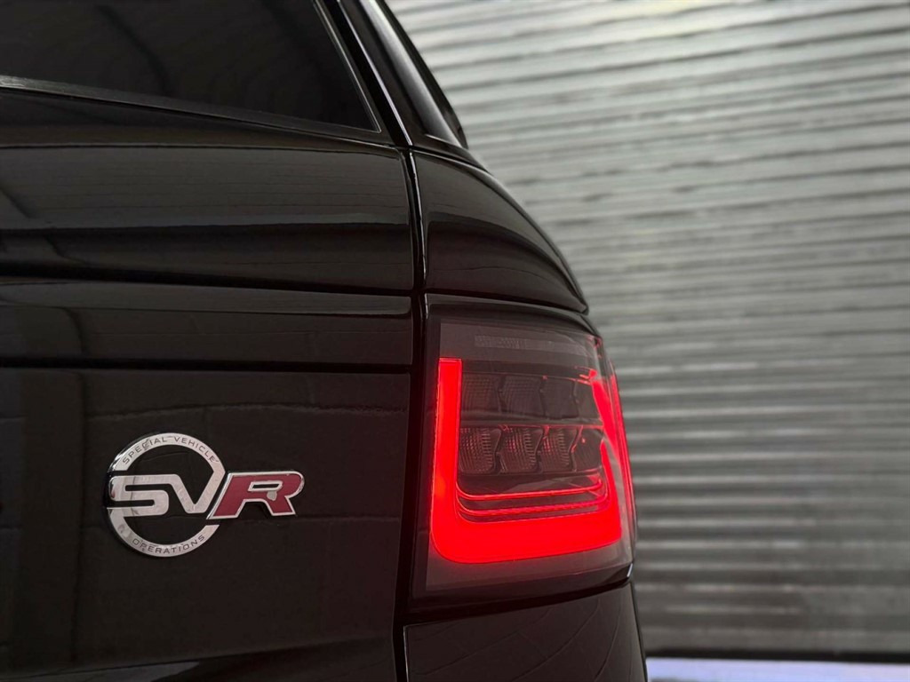 Full Service History, Sat Nav, Black Pack, Carbon Bonnet, Pan Roof, Rear View Camera, Meridian Upgraded Sound System, Head Up Display, Sports Exhaust, 23 Riveira Alloy Wheels, Side Steps, 12V Power Socket,360 Degree Parking Aid,60-40 Folding Rear Seats,ABS - Anti Lock Braking System,ATPC - All Terrain Progress Control,Active Exhaust Control,Adaptive Cruise Control with Stop and Go,Adaptive Dynamics,All Terrain lnfo Centre,Aluminium Gearshift Paddles,Android Auto,Apple CarPlay,Auto-Dimming Interior Mirror,Auto-Dimming Power Fold - Heated Door Mirrors with Memory and Approach Lights,Automatic Headlights,Blind Spot Monitor,Bluetooth Connectivity,Body Coloured Side Sills and Bumper Corners,Brake Pre-fill,Bright Metal Pedals,CBC - Cornering Brake Control,Centre Console with Armrest,Clear Exit Monitor,Configurable Dynamics,Configurable Interior Mood Lighting,Contrast Painted Roof - Narvik Black,Customer Configurable Autolock,Customer Configurable Single Point Entry,DAB - Digital Audio Broadcast,DSC - Dynamic Stability Control,Driver Condition Monitor,Driver and Passenger Airbags,EBA - Emergency Brake Assist,EBD - Electronic Brake-Force Distribution,EPAS - Electronic Power Assisted Steering,EPB - Electronic Park Brake,ETC - Electronic Traction Control,Electric Windows with One-Touch Open-Close and Anti-Trap,Electrically Adjustable Steering Column,Electronic Active Differential with Torque Vectoring by Braking,Emergency Braking,Extended Leather Upgrade,Extended Satin Brushed Aluminium Trim Finisher,Follow Me Home Lighting,Front Door Storage Space,Front and Rear Cupholders,Front and Rear Grab Handles,Front and Rear Recovery Eyes,Glovebox - Lockable,Gradient Acceleration Control - GAC,Gradient Release Control,HDC - Hill Descent Control,Heated Front and Rear Seats,Heated Rear Window,Heated Steering Wheel,Heated Windscreen with Heated Washer Jets,High Speed Emergency Braking,Hill Launch Assist,ISOFIX Child Seat Anchor Points,Illuminated Metal Treadplates with Brand-Name Script,InControl Apps,InControl Protect,Intrusion Sensor,Keyless Entry,Laminated Acoustic Front and Toughened Rear Side Glass,Lane Departure Warning,Lightweight Exhaust System,Loadspace Compartment Light,Loadspace Cover,Loadspace Mounting Provisions,Locking Wheel Nuts,Low Traction Launch,Meridian Surround Sound System 825W,Navigation Pro,Non Smokers Pack,Pixel LED Headlights with Signature DRL,Power Operated Child Locks,Powered Gesture Tailgate - Boot Lid,Premium Carpet Mats,Pro Services and Wi-Fi Hotspot,Push Button Start,RSC - Roll Stability Control,Rain Sensing Windscreen Wipers,Rear Bumper with Integrated Quad Exhaust Finishers,Rear Centre Armrest,Rear Fog Lights,Rear Traffic Monitor,Rear View Camera,Red SV Painted Brake Calipers,Remote Premium,SVR Badge,SVR Engine Cover,SVR Leather Steering Wheel,SVR Performance Seats,Seat Belt Pre-Tensioners,Secure Tracker,Side Repeater Indicators in Mirror,Sports Suspension with Dynamic Response,Standard Roof,Sunvisors with Vanity Mirrors,Switchable Sports Exhaust,TPMS - Tyre Pressure Monitoring System,TSA - Trailer Stability Assist,Terrain Response 2 with Dynamic Program,Three-Zone Climate Control,Touch Pro Duo,Traffic Sign Recognition and Adaptive Speed Limiter,Twin Speed Transfer Box - High-Low Range,Tyre Repair System,Body Coloured Carbon Fibre Bonnet,Head Up Display,Bonnet - Exposed Carbon Fibre,Privacy Glass,Sliding Panoramic Roof Including Powered Blind,Pixel-laser LED Headlights with Signature DRL,Heated and Cooled Front Seats with Heated Rear Seats,Twin Blade Sunvisor with Illuminated Vanity Mirrors,Perforated Windsor Leather with Suedecloth Inserts - Ebony-Ebony
