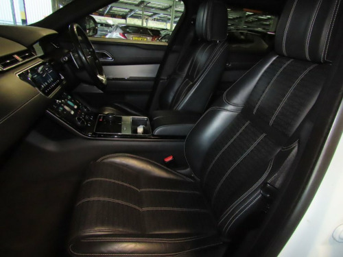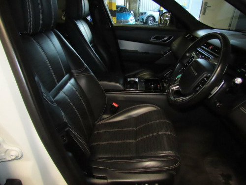 A STUNNING LOOKIING VELAR FINISHED IN FUJI WHITE WITH BLACK PERFORATED UPGRADED EXTENDED EBONY LEATHER INTERIOR. SERVICE HISTORY. Specification includes - 21'' GLOSS BLACK ALLOY WHEELS / HEATED + COOLING ELECTRIC MEMORY FRONT SEATS WITH MASSAGING FUNCTION / SATELLITE NAVIGATION / BLUETOOTH WITH AUDIO STREAMING / PREMIUM EXTENDED LEATHER / BLIND SPOT ASSIST / FRONT AND REAR PARKING SENSORS WITH REVERSING CAMERA / PREMIUM AUDIO SYSTEM - 1280W / PARK ASSIST / 360 PARKING AID / POWER REAR SEAT RECLINER / REAR SPOILER / ELECTROCHROMIC REAR VIEW MIRROR / PRIVACY GLASS / TRAFFIC SIGN RECOGNITION + SPEED LIMITER / LUMBAR SUPPORT / DIGITAL DASH / AMBIENT INTERIOR LIGHTING / LANE DEPARTURE WARNING + KEEP ASSIST / MULTIFUNCTIONAL LEATHER STEERING WHEEL WITH PADDLE SHIFTERS / HEADLAMP POWER WASH / DUAL ZONE CLIMATE CONTROL WITH AIR CONDITIONING / HEATED WINDSCREEN WASHER JETS / LED MATRIX HEADLIGHTS / HEATED FRONT AND REAR WINDSCREENS / AUTO DIP - HIGH BEAM ASSIST / REDUCED SECTION SPARE WHEEL / ACC + STOP/GO / AUTO BOOT / DAB DIGITAL RADIO / ELECTRIC WINDOWS AND MIRRORS / CENTRAL LOCKING. FINISHED IN FUJI WHITE WITH BLACK PERFOR, ++ 21'' GLOSS BLACK ALLOY WHEE, ++ REVERSING CAMERA ++, ++ HEATED/COOLING/MEMORY FRONT SEATS ++, ++ MASSAGING FRONT SEATS ++, ++ PRIVACY GLASS ++, 12.3in TFT Full Digital Instrument Clust, 20-Way Powered Seats with Driver-Passeng, 21in Alloy Wheels - 10 Spoke - Style 103, 325mm Front Brakes, 360 Degree Parking Aid, 40-20-40 Split Fold Rear Seat, ABS - Anti Lock Braking System, Acoustic Laminated Windscreen, Adaptive Cruise Control with Stop and Go, Adaptive Front Lighting, Air Quality Sensor, Airbags - Curtain, Airbags - Driver, Airbags - Front Passenger, Airbags - Front Side, All Season Tyres, Auto-Dimming - Power Fold - Heated Door , Auto